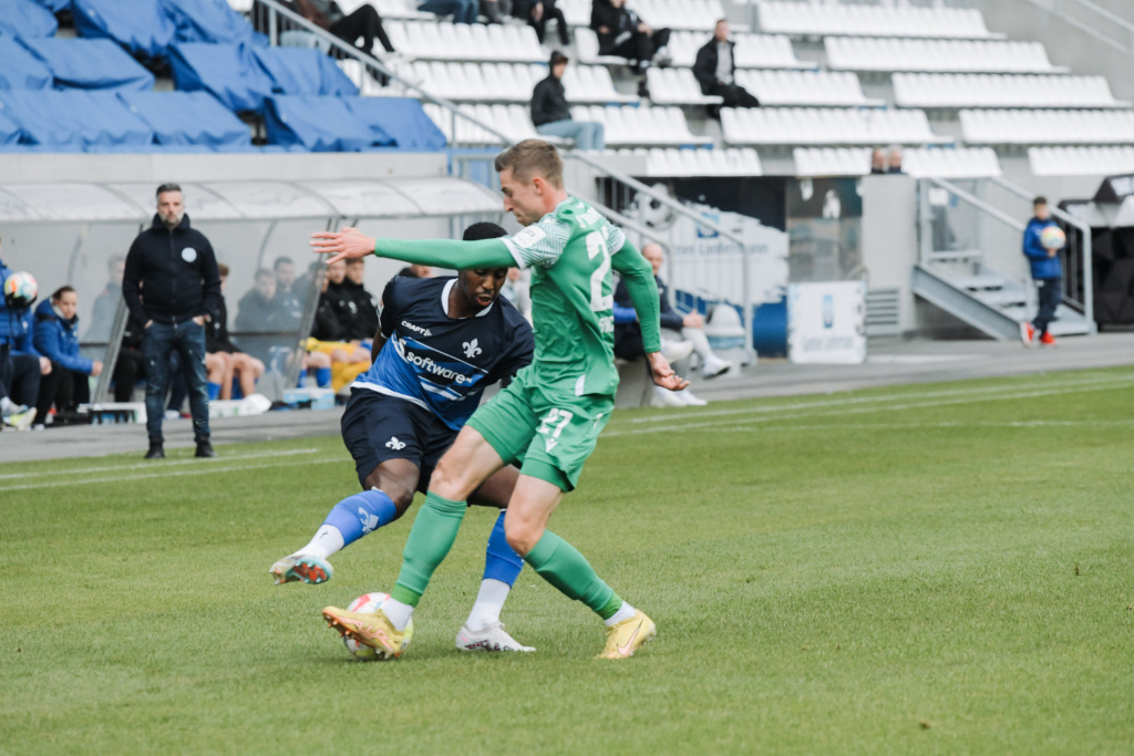 Zur zweiten Hälfte brachte Cheftrainer Torsten Lieberknecht insgesamt fünf Neue in die Partie. Neben Phillip Tietz auch Magnus Warming, Fabian Holland, Emir Karic und Clemens Riedel. Während sich nach Wiederanpfiff zunächst aber beide Mannschaften neutralisierten, war es nach 58. Minuten ein Darmstädter, der für die Führung der Gäste sorgte: Keanan Bennetts köpfte eine Sandhäuser Hereingabe unglücklich ins eigene Tor. Doch ließen sich die Lilien davon nicht aus dem Konzept bringen. Vielmehr versuchten sie nun, mehr Druck auf den gegnerischen Kasten zu entfachen, was bereits drei Zeigerumdrehungen später beinahe belohnt wurde. Nur knapp zischte ein sehenswerter Schlenzer von Braydon Manu (60.) am Tor vorbei. In der 71. Minute war es dann erneut Manu, der den Ausgleich auf dem Fuß hatte, dieses Mal allerdings am Sandhäuser Keeper scheiterte.