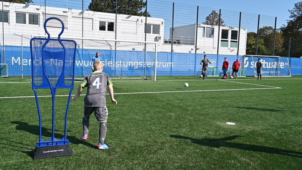Mit den beiden NLZ Trainern Leon und Lucas standen kompetente Trainer auf dem Platz, die die Spieler forderten. Begonnen wurde mit Technikübungen am Ball. Vorwärts, rückwärts, Innenseite, Außenriss, ambitioniert ging es ran an den Ball. Nach der Aufwärmphase wurde an zwei Stationen auf verschiedene Art und Weiße versucht, den Ball im Tor unterzubringen, dabei feuerten sich die Athleten gegenseitig an und freuten sich über jedes erzielte Tor. Das Highlight des Trainings stellte aber das abschließende Spiel dar. In einer spannenden Partie fielen insgesamt sechs Tore. „Toll und Danke, dass Ihr es möglich gemacht habt, dass unsere Athleten hier heute trainieren können. Für viele ist leider der Sport in den Einrichtungen wegen Corona zu kurz gekommen und man sieht ja, was für einen Spaß sie haben wieder aktiv zu sein“ bedankt sich Judith Melzer, Assistentin der Geschäftsführung von Special Olympics Hessen.