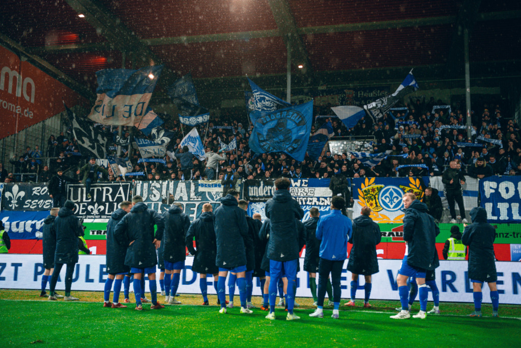 Es ist wahrlich kein leichter Gang, den die Lilien nach Abpfiff der ersten drei Spiele im Dezember antreten müssen. Ob nach dem Heimspiel gegen Köln. Ob im strömenden Regen von Heidenheim. Oder nach dem 0:1 gegen den VfL Wolfsburg. Und doch sind die Momente nach Niederlagen vor der Fankurve besondere. Sie geben allen Darmstädtern sowohl Kraft als auch Stärke für die weitere Saison. Momente des Zusammenhalts und der Gemeinsamkeit. Die Bilder aus der Kurve nach Niederlagen, sie sind kraftvoll und ehrlich. „Wir sind immer da! Wir sind Darmstädter!“, ertönt es zum Beispiel minutenlang aus dem Block in Heidenheim nach einer 2:3-Niederlage. Marcel Schuhen: „Das hat mir Gänsehaut bereitet.“ Mit über 2.400 Lilien-Fans im Rücken geht es dann zum Jahresabschluss nach Sinsheim. Die Anhänger des SV 98? Sie machen das Auswärtsspiel stimmungstechnisch zum Heimspiel. Die Lilien erkämpfen sich bei der TSG Hoffenheim auch dank dieser Unterstützung auf den Rängen sowie großer Moral auf dem Platz ein leidenschaftliches 3:3. Mit zehn Punkten nach 16 Spieltagen überwintern die Lilien auf dem 18. Tabellenplatz der 1. Fußball-Bundesliga. Und die Marschroute für das neue Jahr ist bereits im Dezember klar. „Es geht nur gemeinschaftlich“, sagt der Torhüter des SV 98.