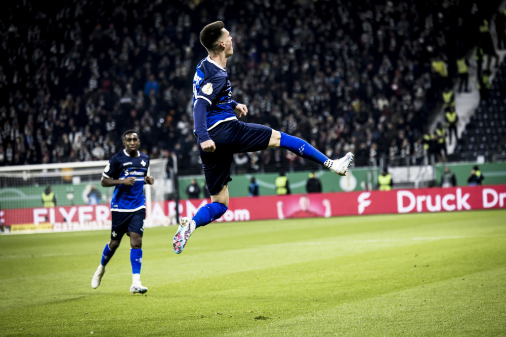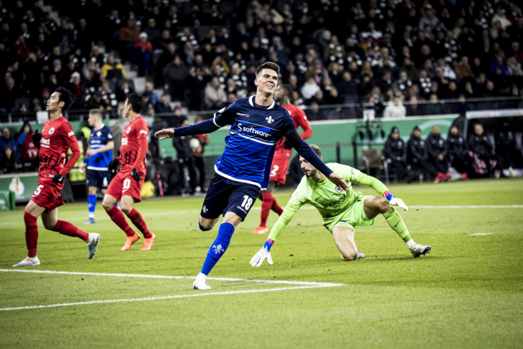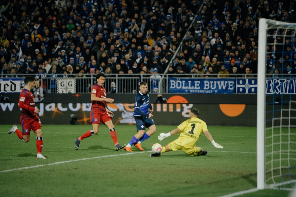 Ein Monat voller sportlicher Highlights. Einem souveränen und unangefochtenem 4:0-Auswärtserfolg folgt das ganz große Spektakel: DFB-Pokal, Hessenderby im Achtelfinale. Der SV Darmstadt 98 auswärts beim zum damaligen Zeitpunkt amtierenden Europa-League-Sieger und Champions-League-Achtelfinalisten von der Frankfurter Eintracht. Den Pokalfight verlieren die Lilien zwar mit 2:4, doch agieren die Südhessen mit einer großen Portion Mut und Freude am Fußball. Sie zeigen Leidenschaft und ihr blau-weiß-pulsierendes Lilien-Herz. Ein Spiel, das deutschlandweit ein Millionenpublikum vor die Fernsehgeräte lockt. Und die Darmstädter, sie lassen sich danach auch vom Ausscheiden nicht beirren. Stattdessen setzen sie ihren Lauf in der Liga fort. Erst ein 2:1-Sieg gegen Eintracht Braunschweig, dann ein umjubelter 1:0-Auswärtssieg durch ein direktes Freistoßtor bei Hansa Rostock und anschließend das Top-Spiel der 2. Bundesliga. Von frenetischen Lilien-Fans im Merck-Stadion am Böllenfalltor angetrieben, erringt die Vollgasmannschaft vom Bölle, welche das Bremspedal an diesem Flutlichtabend komplett abmontiert hatte, in unglaublicher Atmosphäre ein 1:1 gegen den Hamburger SV.
