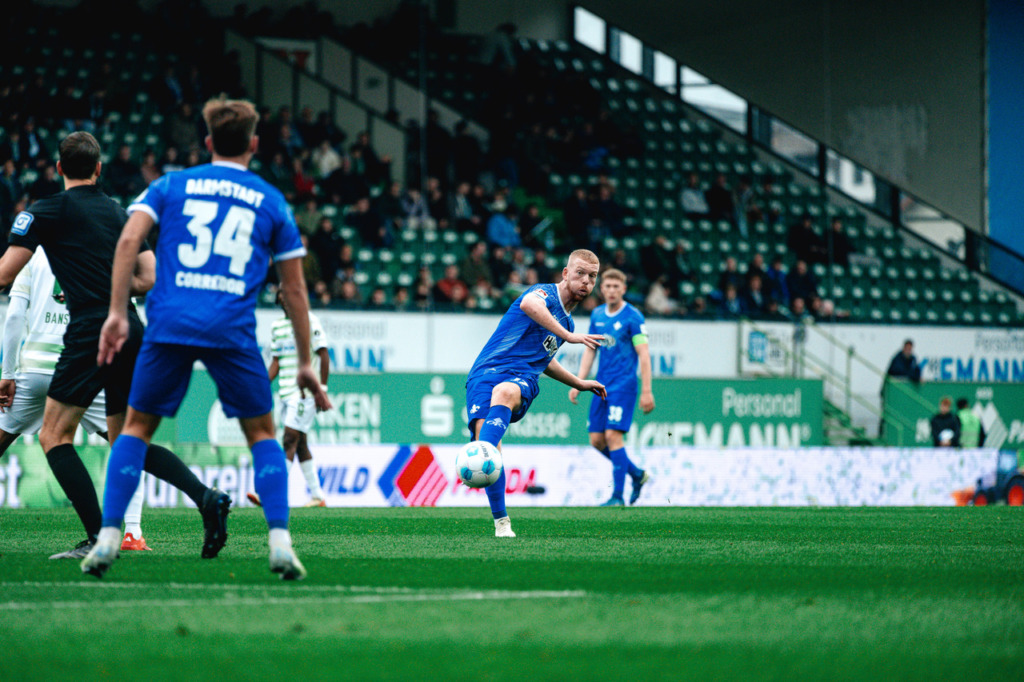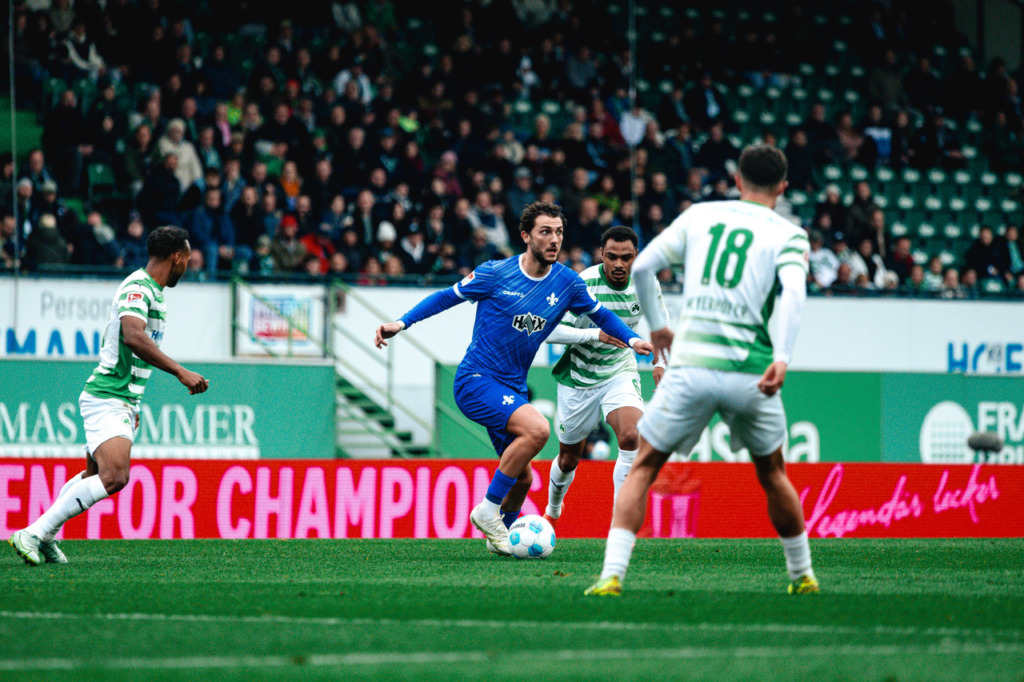 In the away game at SpVgg Greuther Fürth, SV 98 tried to take control of the game right from the start. Both teams approached the goal cautiously, but a shot from Killian Corredor flew past the goal on 6 minutes and on the other side Green’s long-range shot was parried away by Marcel Schuhen in the 8th.