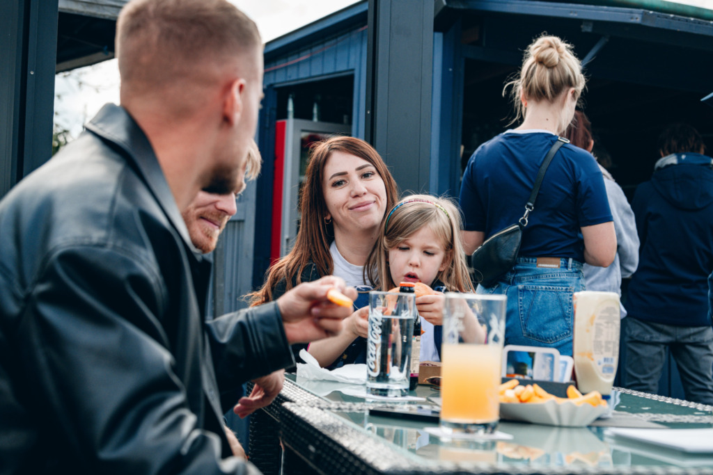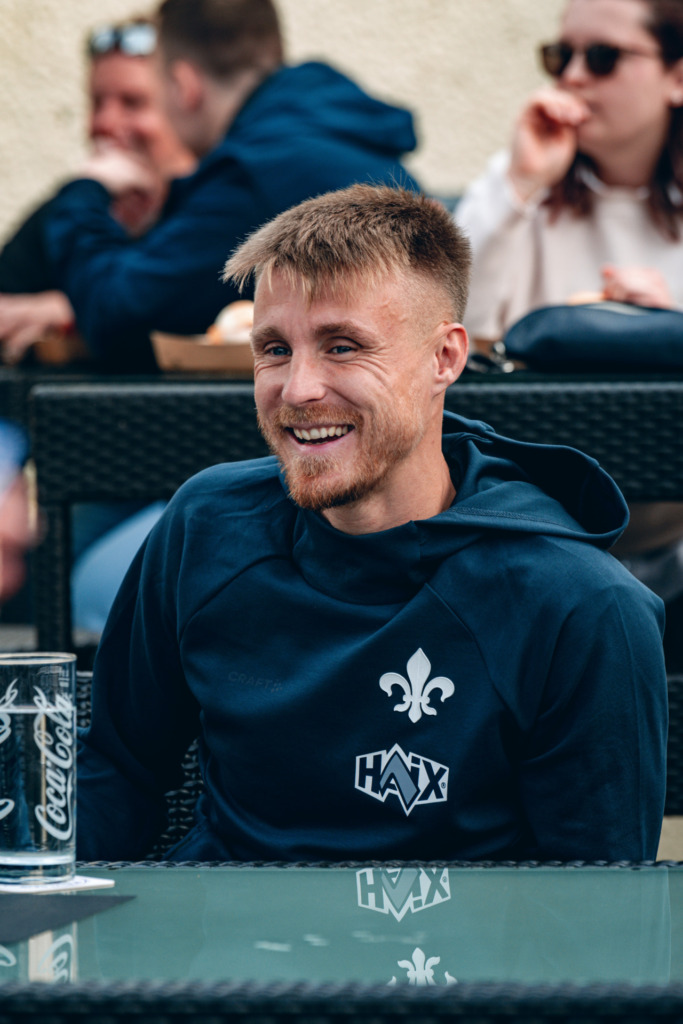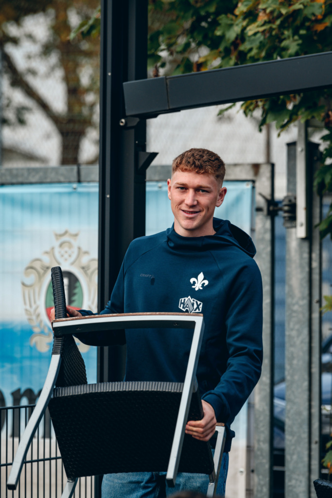 Because after the work was done and as a thank you for their great effort, Krombacher invited all participants to eat together and watch the second division in the Lilienschänke. As a special highlight, Clemens Riedel, Fabian Nürnberger and Marco Thiede also stopped by the get-together. The three Lilien professionals were available for photo and autograph requests, but also for lively conversations.