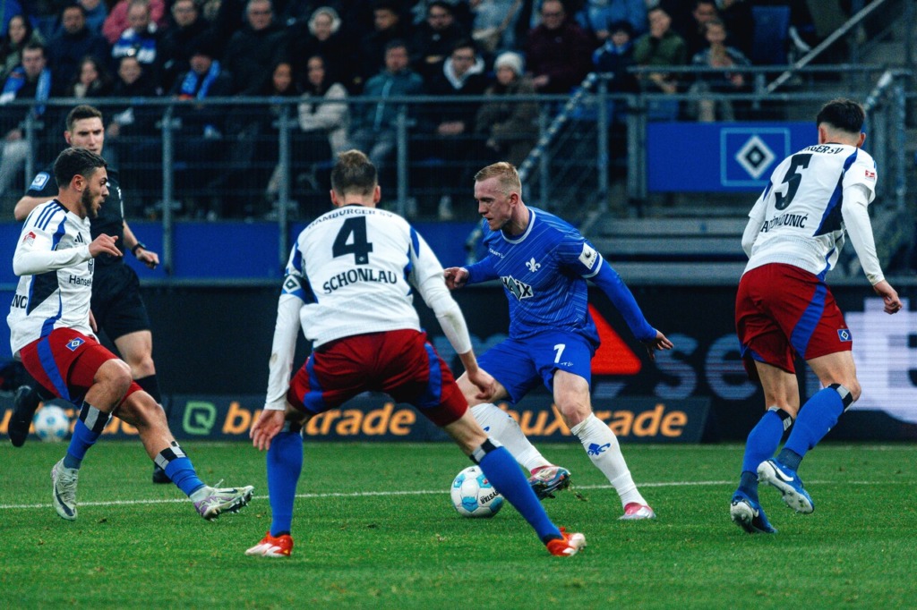 In the away game at Hamburger SV, the Lilies had their first chance after just eight minutes: Isac Lidberg asserted himself strongly against his opponent, tried from a tight angle and saw his shot cannon off the post. The hosts did better two minutes later and took advantage of their first chance when Königsdörffer scored precisely in front of Marcel Schuhen. A goal that came against the run of play considering the bright start made by the Lilies.