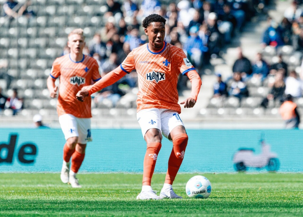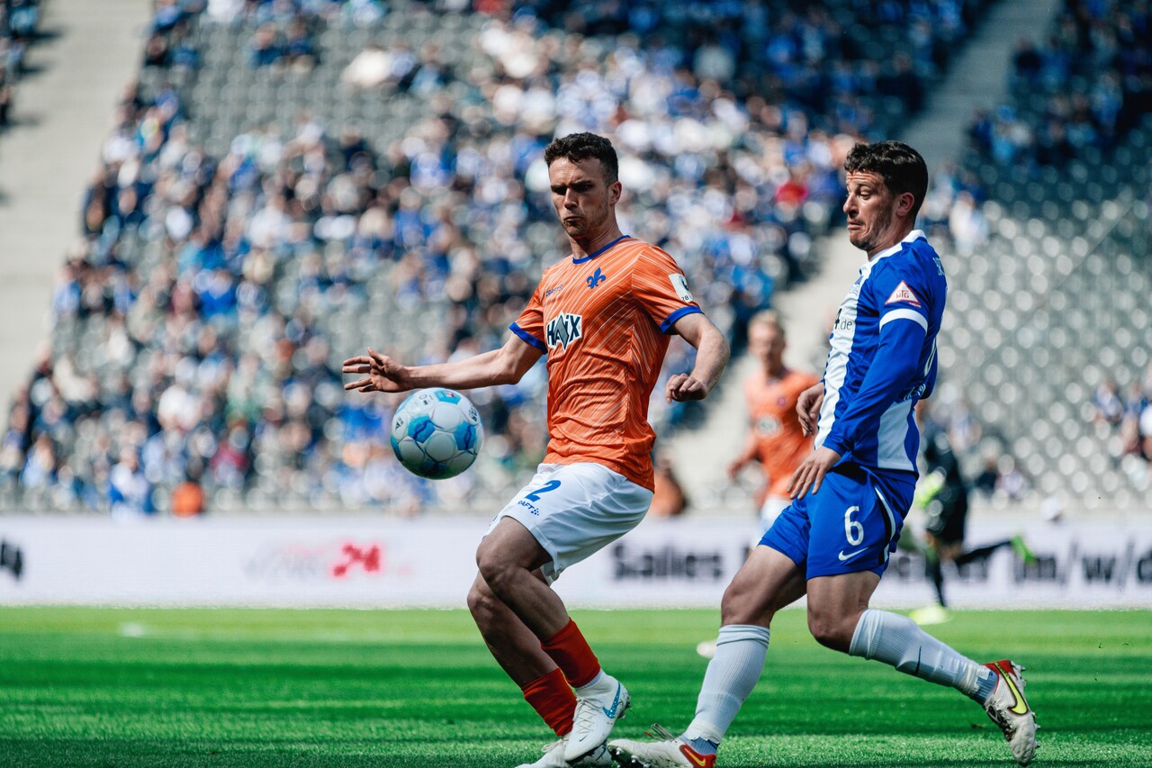 The Lilies began their away game in the capital with plenty of possession. The visitors patiently moved the ball through their own ranks, but initially couldn’t find any gaps and couldn’t get any shots on goal. It wasn’t until the 19th minute that things really got dangerous for the first time – and really dangerous: After a corner, the ball fell to Isac Lidberg. Under pressure, the Swede shot but was thwarted by Ernst in the Hertha goal. Two minutes later, things also got dangerous at the other end when Reese’s cross slipped towards the goal. Marcel Schuhen, however, tipped the ball over the crossbar.