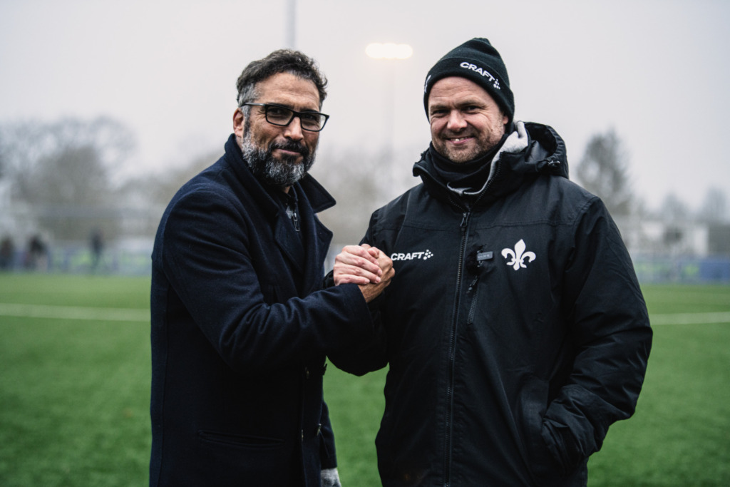 After a visit to the DFB Academy in Frankfurt, Ferruzzi and Lizardo received a comprehensive insight into the conditions at the Böllenfalltor location. The extensive tour of the stadium, which was carried out by Eilers and Kowalewski, included not only the changing rooms, playing field and weight room, but also the offices of the function building and the business and hospitality areas of the main stand.