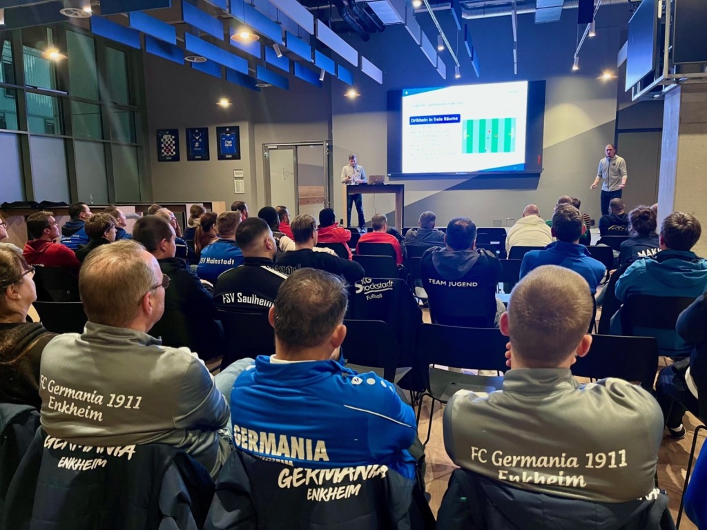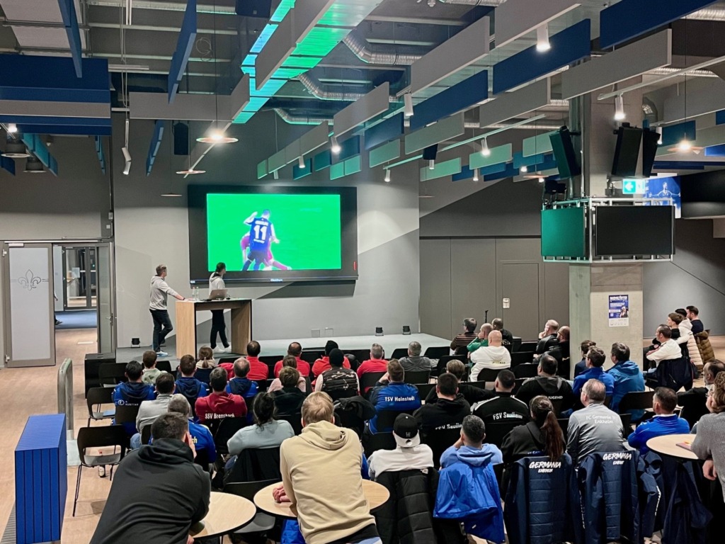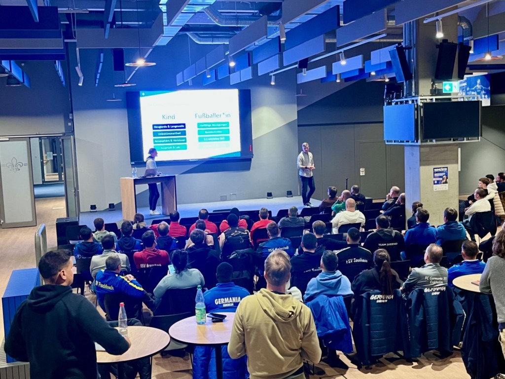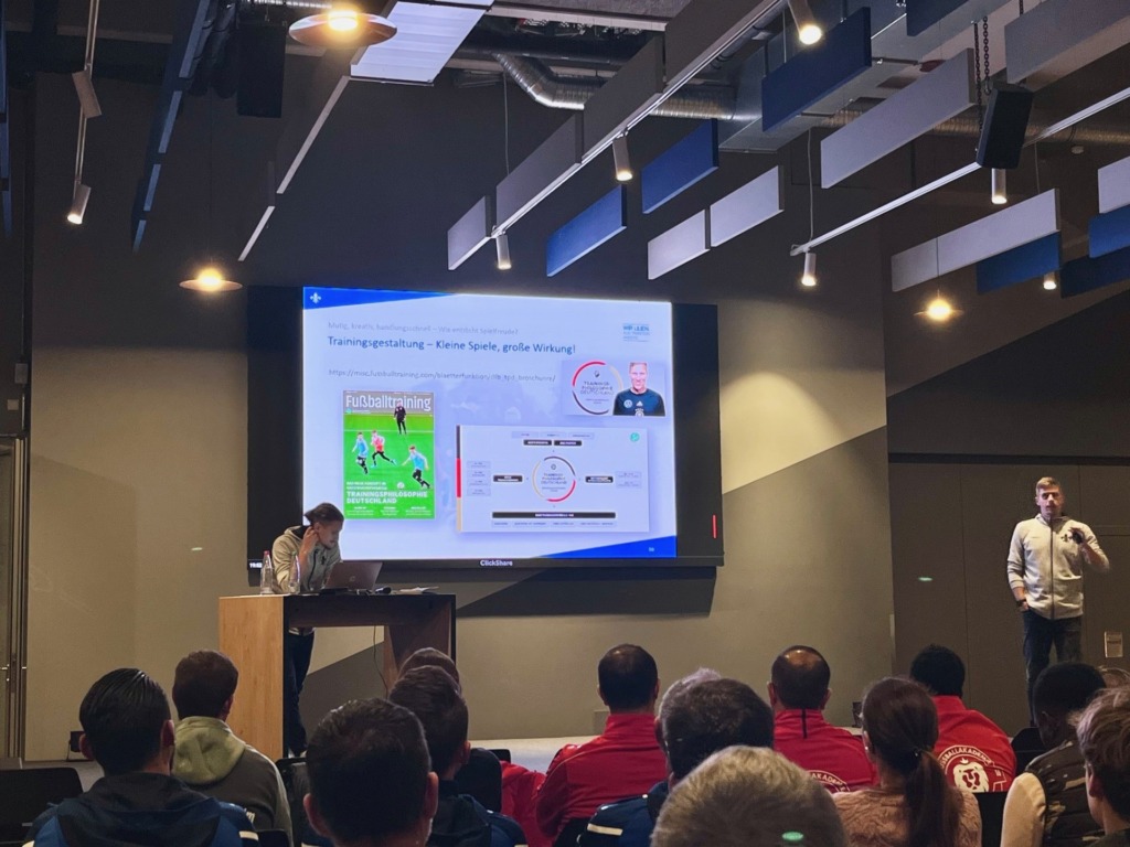 The training focused on the basics of youth football, the age groups U9 to U12. Topics such as creativity, speed of action and courage formed the core points of the program – with a clear goal: to give the children the joy of play. Michael Fischer, coordinator for the age range U10 to U14, and Bogdan Ficut, coach of the U11 team at SV 98, organised the evening with a presentation. The lecture concluded with an open discussion in which around 70 participants enthusiastically exchanged their impressions and ideas with each other.