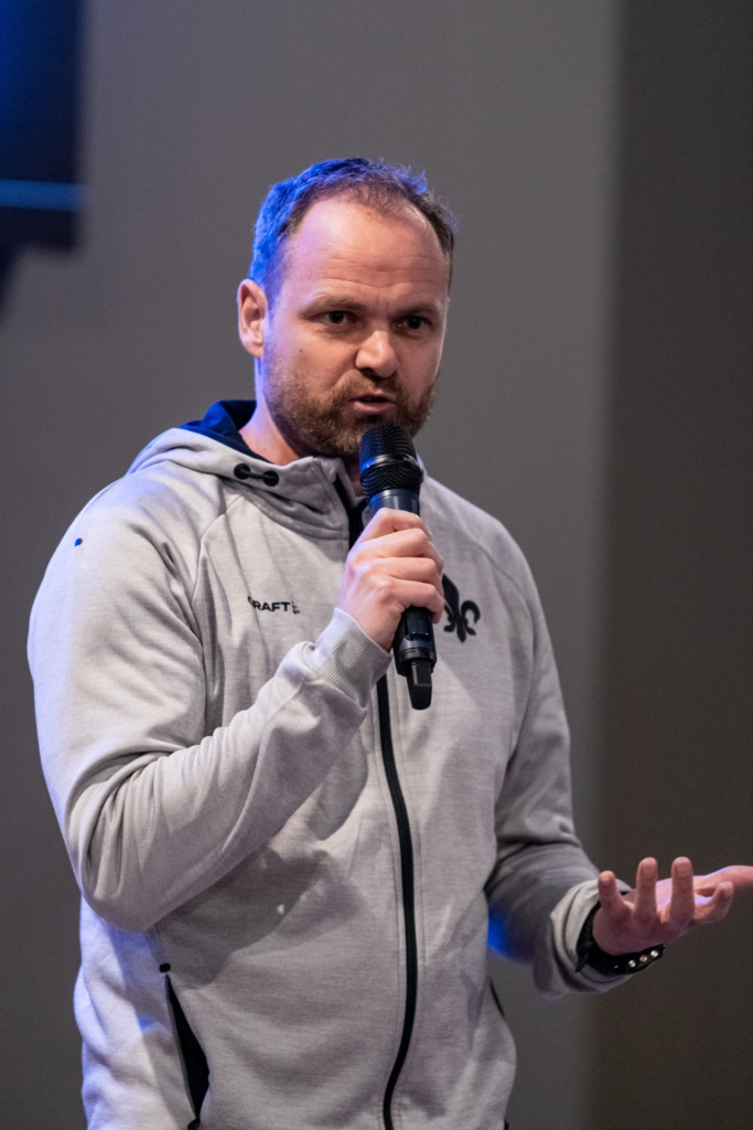 Eröffnet wurde der Abend von Björn Müller, dem sportlichen Leiter des NLZ. „Wir wollen einen Einblick geben, wie wir trainieren und unserem Auftrag gerecht werden, als Partner da zu sein“, formulierte er die Zielsetzung des Abends. In seiner Eröffnungsrede zog er den Hut vor den ehrenamtlich arbeitenden Trainern, die sich „sogar an einem Montagabend Zeit genommen haben, um ihren Verein besser zu machen.“ Müller lobte zudem die „Arbeit an der Basis“ und leitete dann zu David Gaedigk und Thomas Lutz, den Trainern der U13 und U14, über.