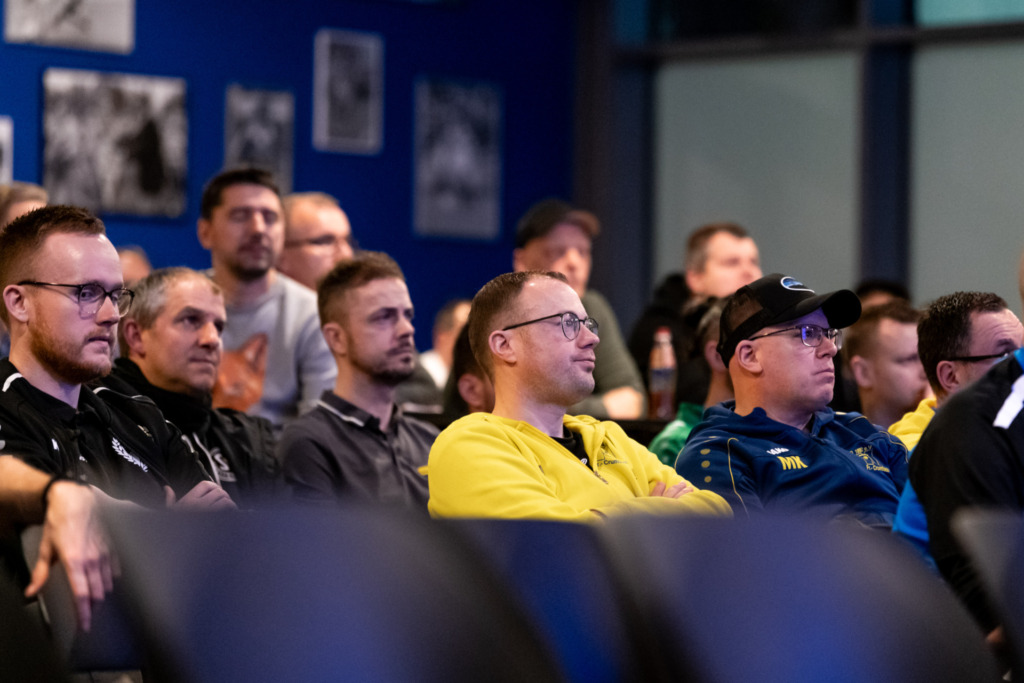 Abgerundet wurde der Abend dann durch Dialoge untereinander, aber auch mit Rückfragen an die beiden Trainer. Geschichten aus dem Trainingsalltag wurden erzählt, verschiedene Taktik- und Trainingsansätze besprochen. Nach der Veranstaltung blieben noch viele zurück, um in kleinen Gruppen oder in Vieraugengesprächen Erfahrungen zu teilen. „Es hätten vom Interesse her auch 200 Teilnehmer werden können. Die Fortbildung ist auf Gegenliebe gestoßen“, zog Müller ein positives Fazit über den gelungenen Abend auf Augenhöhe.