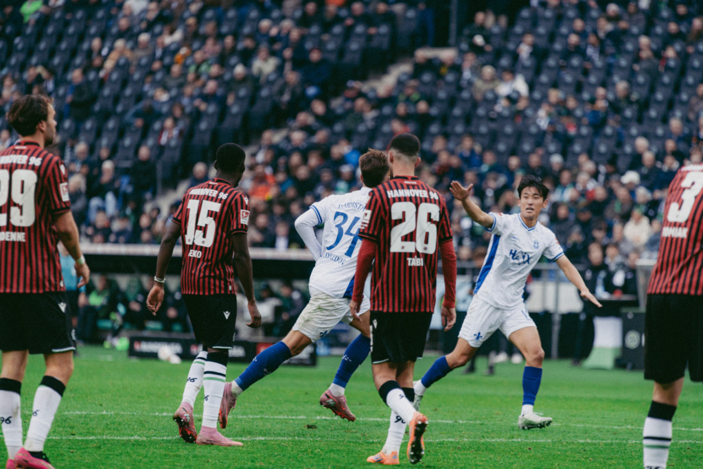 Nevertheless, both incidents really got Hannover going and fueled the hosts‘ period of sustained pressure before halftime. With a 2-1 lead, 96ers pinned Darmstadt back in their own half. Källmann (37th minute) was denied by Schuhen, hit the crossbar four minutes later, Oudenne struck the post in the 43rd minute, and just seconds later Taibi could have added another goal. Four clear-cut chances within seven minutes. „We lost our heads a bit. We weren’t challenging passes, we weren’t changing positions, it was a bit chaotic. We conceded far too much,“ summarised Kohfeldt.