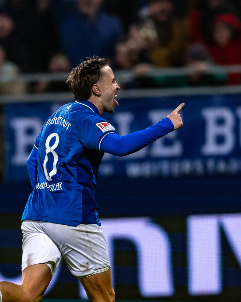 Even more remarkable, however, was a scene just minutes after the final whistle on Saturday evening, when Florian Kohfeldt gathered his team in a circle on the pitch of the Merck Stadium Böllenfalltor. Normally, the head coach gives a short speech here after every match – Paul Fernie has already done so this season, as has captain Marcel Schuhen. But Kohfeldt, as he revealed after the final whistle, had never singled out a player to praise individually in front of the team so soon after the game. He did just that with Fynn Lakenmacher. “Because I was impressed by what he delivered in terms of his sporting achievements. But even more so by how he drew this strength from the last few months in which he didn’t play much,” Kohfeldt explained.