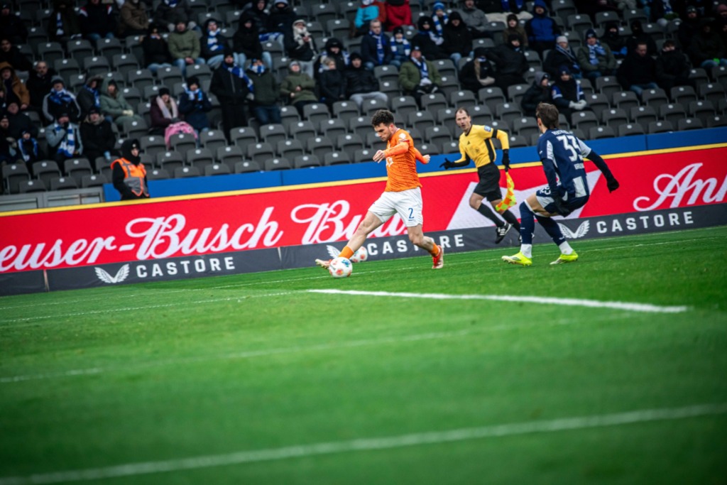 For us, the defining moment of the match came in the 29th minute. It was the instant when Hertha’s Michaël Cuisance found himself unmarked about ten metres out, but his shot went just centimetres wide of the Darmstadt goal. A goal from the Frenchman would have made it 3-0 for Darmstadt, and likely sealed the victory. „If Cuisance had made it 3-0, we probably wouldn’t have been able to come back,“ Florian Kohfeldt summarised, and Hertha coach Stefan Leitl also stated after the final whistle that a third goal for the Berliners would almost certainly have sealed the home win for his team.