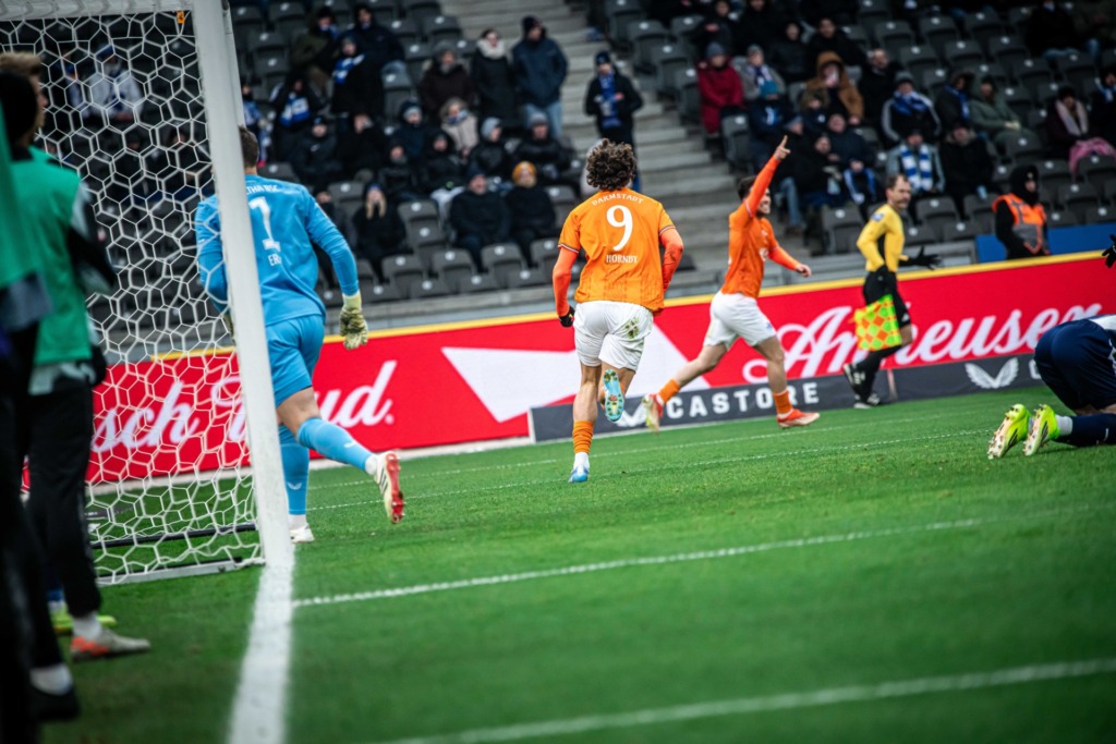 And so, Darmstadt 98 gradually found their way into the game, pulled one back with a penalty, and therefore went into the locker room with a positive feeling despite the deficit: „We had more control towards the end of the first half, so we knew we’d get our chances after halftime,“ revealed Fraser Hornby, who capped off the significant improvement in performance after the break with the 2-2 goal after just over an hour.