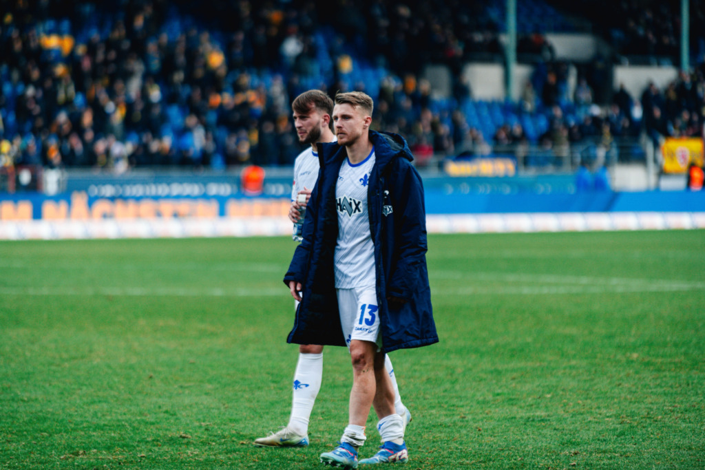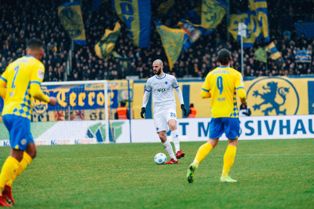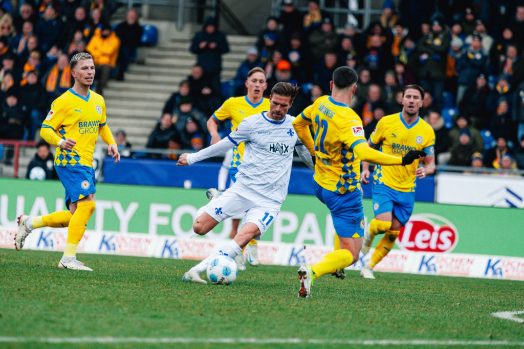 The fighting spirit right up to the final whistle: „There are certainly teams that might fall apart with a 1-0 deficit or after being sent off. Not us. Quite the opposite. We tried everything and were more dangerous than Braunschweig when we were outnumbered.“ With these sentences, Marcel Schuhen emphasised in an interview with NDR what positive aspects the Lilies can take back to southern Hesse. Nobody could deny SV 98’s commitment and will after the 90 minutes in Braunschweig. “We fought until the last second and were ready to defend ourselves,” said Kohfeldt, who called three tall central defenders into the attack in the final phase: Aleksandar Vukotic, Matej Maglica and debutant Meldin Dreskovic. Goalkeeper Marcel Schuhen also dived into the opponent’s penalty area in the final minutes and explained afterwards: „We accepted the difficult situation and were not above playing long balls and putting everything in. The important thing is that we can look in the mirror and say: we tried everything.“
