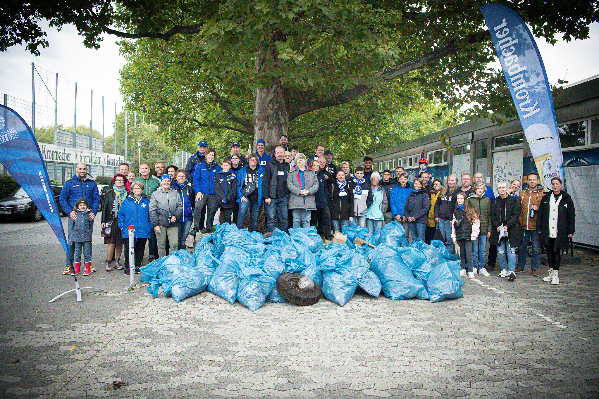 Um 15 Uhr hatten sich trotz des ungemütlichen Wetters zahlreiche Teilnehmer*innen vor dem Stadion eingefunden. Nachdem Müllsäcke und Handschuhe verteilt waren, gingen sie in Kleingruppen im unmittelbaren Stadionumfeld und insbesondere auf den angrenzenden Waldflächen auf die Suche nach Abfall und Unrat.