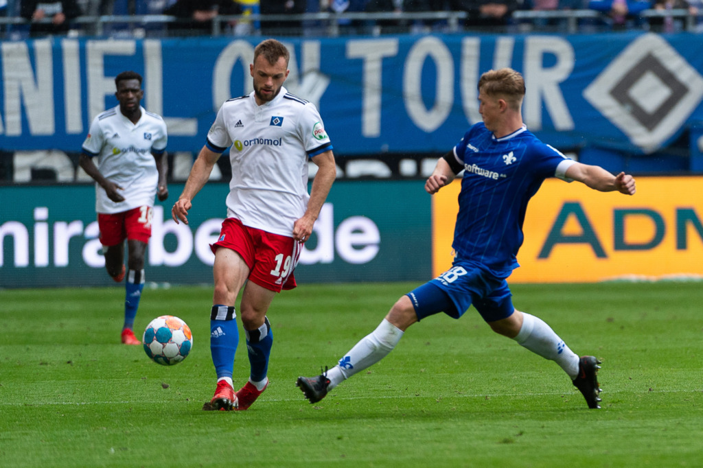 Clemens Riedel (#38, SV Darmstadt 98) im Duell mit David Otto (#14, SSV Jahn Regensburg) (DFL/DFB REGULATIONS PROHIBIT ANY USE OF PHOTOGRAPHS AS IMAGE SEQUENCES AND/OR QUASI-VIDEO) , 2. Bundesliga, SV Darmstadt 98 - SSV Jahn Regensburg, 24.07.2021, Darmstadt, Merck-Stadion am Boellenfalltor 06.04.2023 / Profis