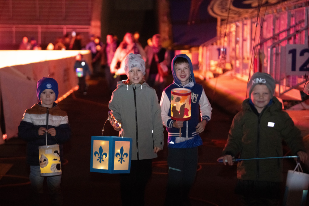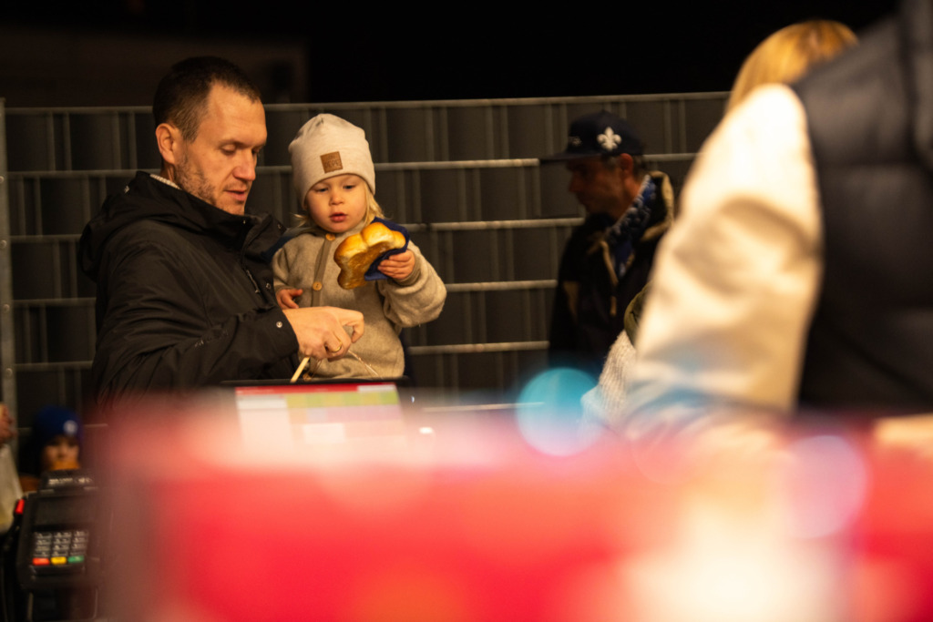Shortly after the sun dipped behind the stadium, numerous participants, both young and old, gathered outside to experience the 3rd Lantern Run in a special evening atmosphere. The children were greeted by the two professional goalkeepers, Alexander Brunst and Benedikt Börner, who had small goody bags and autographed cards ready for everyone.