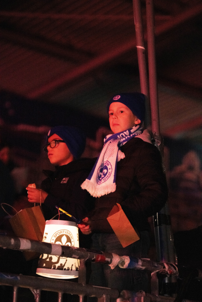 Around 50 members of the Bölle Gang and their parents met on Wednesday (November 5th) at the Merck Stadium at Böllenfalltor to participate in the 3rd Bölle Gang Lantern Run. Instead of the four floodlights, the youngest fans' creatively crafted Lilies lanterns illuminated the early Wednesday evening.