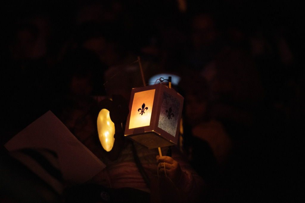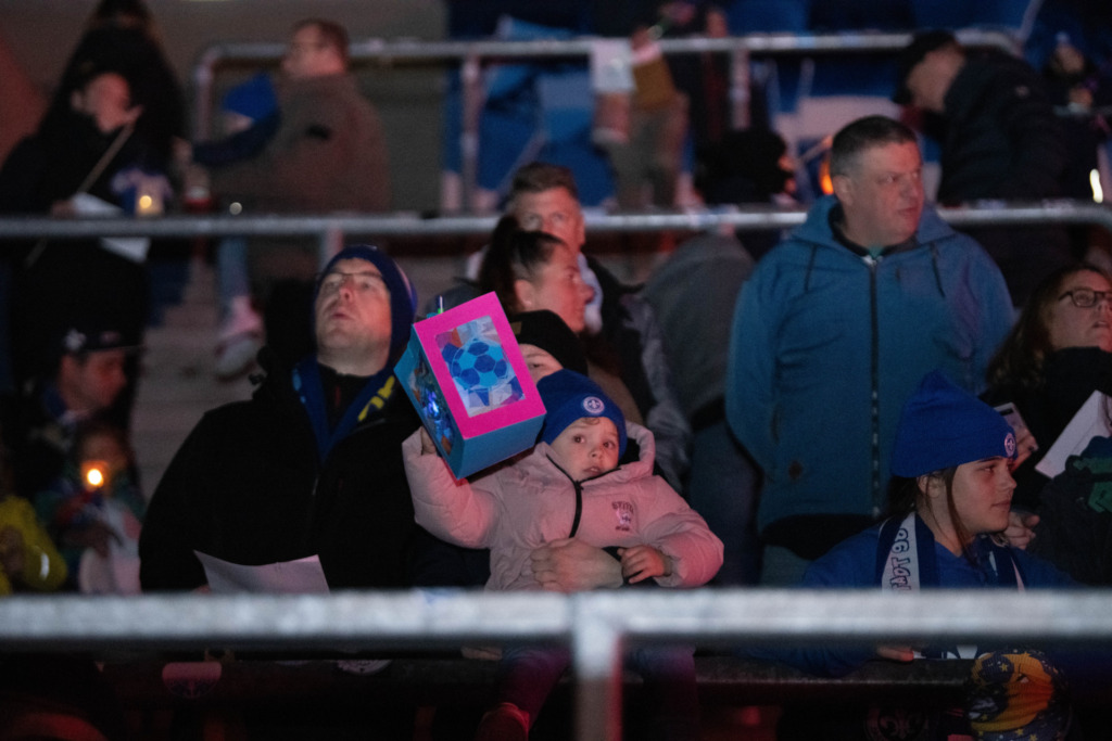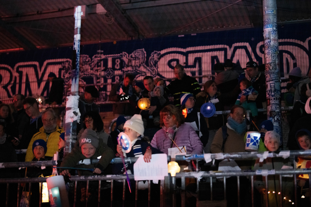 The approximately 120 participants then set off through the stadium – a luminous procession accompanied by the glow of colourful lanterns. The route led through the pitch, from the main stand, along the north and opposite stands, and on to the south stand.