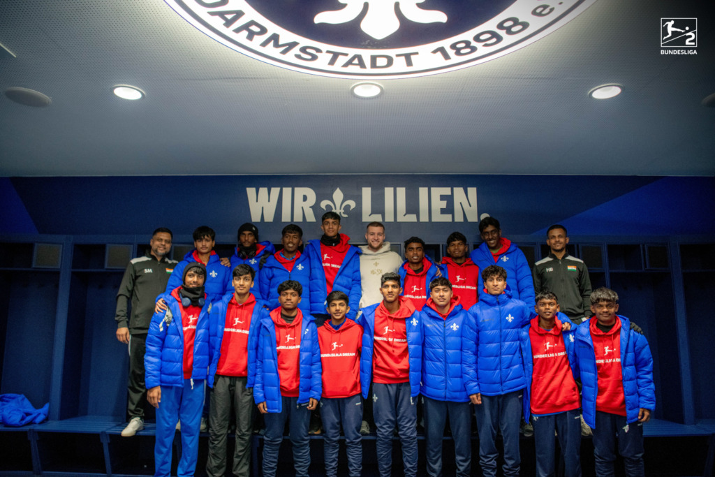 Im Jahr 2022 startete die Deutsche Fußball Liga (DFL) die Initiative „Bundesliga Dream.“ Dadurch werden lokale Fußballinstitutionen in Asien bei der Entwicklung und Förderung des Jugendfußballs unterstützt. Im Rahmen des Projekts „Bundesliga Dream India“ besuchten nun 16 Spieler einer U15-Auswahl aus Indien den SV Darmstadt 98. Während der Visite absolvierten die Nachwuchsfußballer Trainingseinheiten im Nachwuchsleistungszentrum (NLZ) der Lilien, bekamen eine Stadionführung, besuchten das Heimspiel des SV 98 gegen Arminia Bielefeld und bestritten ein Testspiel. Wir blicken noch einmal auf die ereignisreichen Tage zurück.