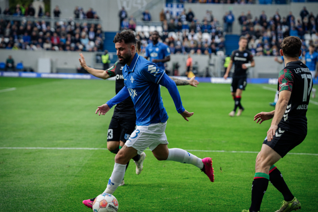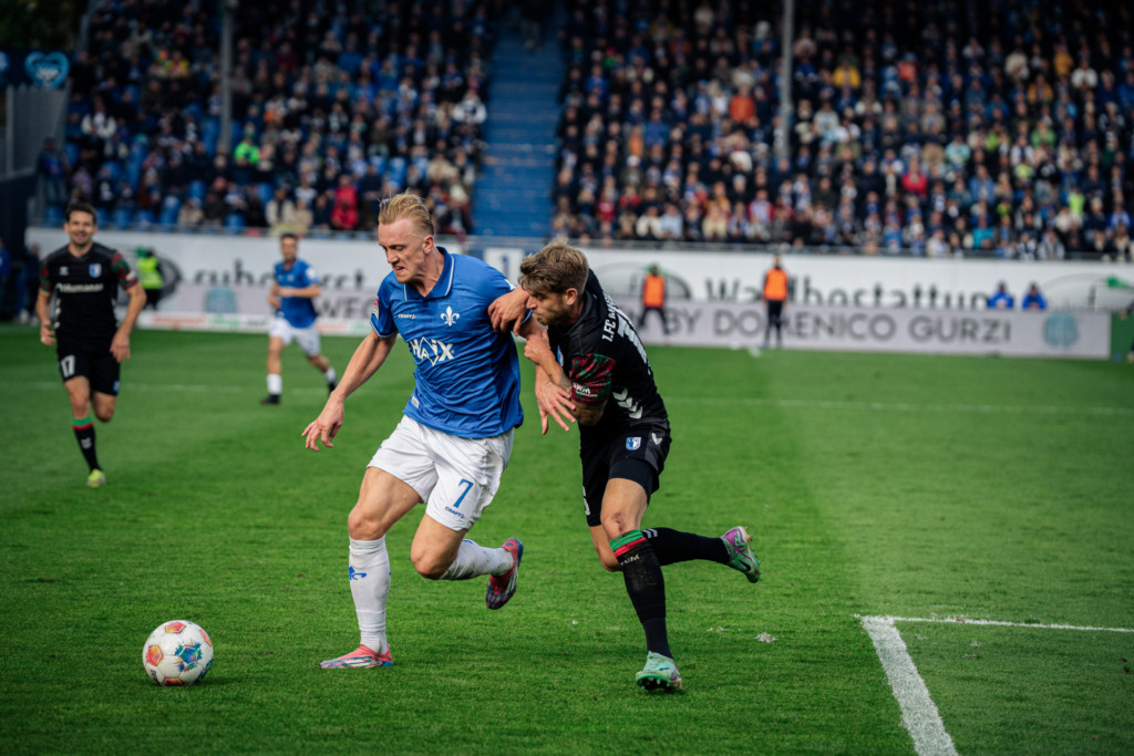 The first-half hat trick: „Individually, it wasn’t our best performance,“ said Florian Kohfeldt after the match, reflecting on his team’s performance. Yet the Lilies could have, perhaps even should have, turned the game in their favour before halftime. Marco Richter had good opportunities to take the lead in the 27th and especially in the 36th minute, while Fraser Hornby missed another great opportunity shortly before the break. „We finished the chances we had poorly,“ Kohfeldt rightly concluded, citing one of the main reasons for the goalless draw at the Merck Stadium at Böllenfalltor.
