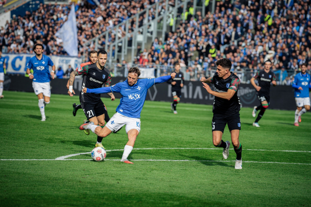 The defence. The Lilies‘ back three was very solid throughout the entire game, and FCM didn’t have a 100% chance of scoring over the 90 minutes. The defensive line of Pfeiffer, Vukotic and Maglica was very alert, as resolute as ever in aerial duels, and also did a more than decent job on the ground. The defensive processes worked, and Marcel Schuhen was able to celebrate his fifth clean sheet of the season after the final whistle. In the entire previous season, the South Hesse side had only kept four clean sheets.