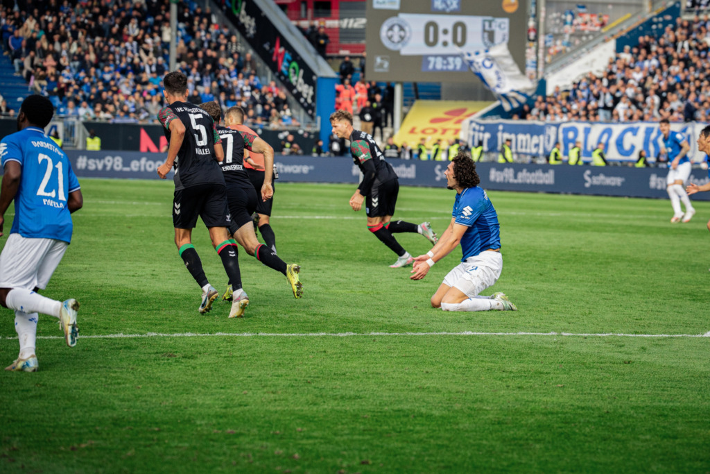 Accordingly, the Lilies‘ head coach expressed himself „by no means dissatisfied with the way the game went,“ in which SV 98 remained stable and repeatedly won the ball back. Up to this point, we could have categorised this section as „that went well,“ but the category changed due to the incidents that followed the ball wins. „What we did with it wasn’t good,“ Kohfeldt admitted candidly, citing numerous moments in which the Lilies missed the final pass.