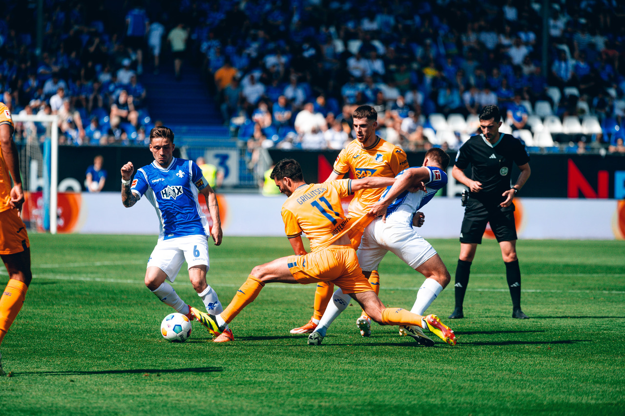 In the period that followed, the guests controlled the game and the Darmstadt team failed to develop. However, there were hardly any chances to score on Hoffenheim’s side during this phase. Pavel Kaderabak added a third after 22 minutes as he raced cleared and fired in off the far post. Four minutes later, Kabak made it 4-0 following a corner as he rose unchallenged to flick home. One minute before the half-time whistle, Beier scored his second to make the score 0-5. This marked the end of a first half that was absolutely needed from Lilien’s point of view.