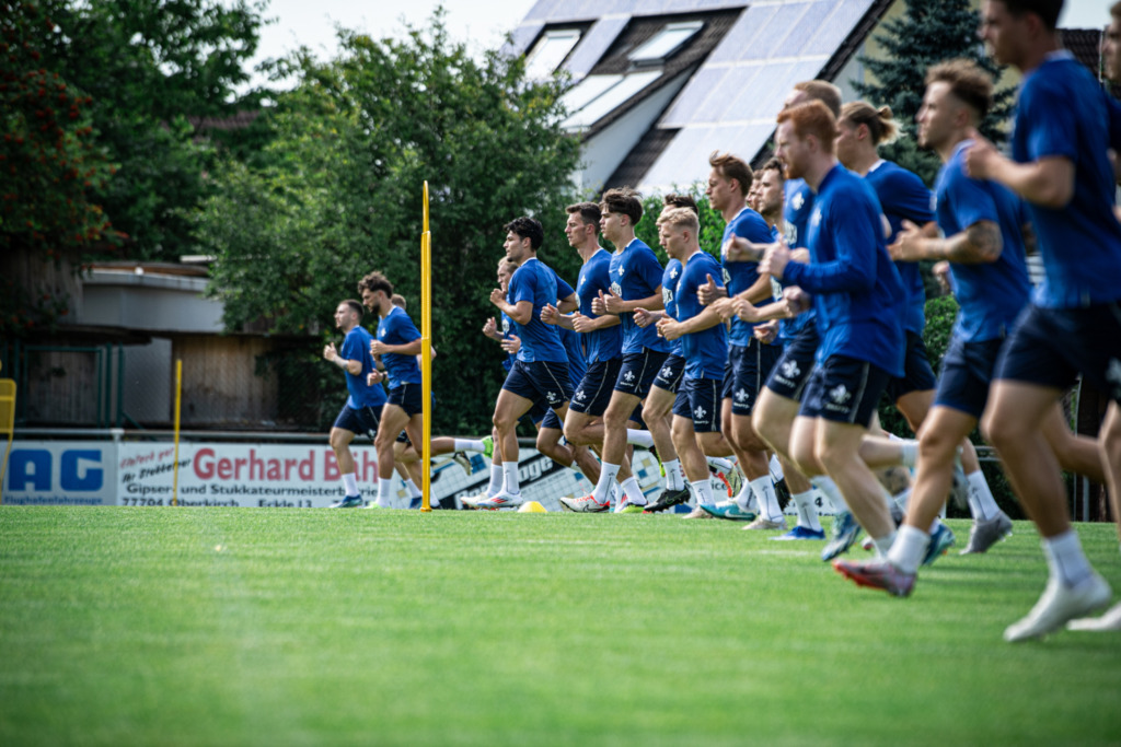 The first day of the training camp already showed what the Lilies in Lautenbach were up to – namely, toil, toil and toil again. At 4.30pm sharp, the South Hesse players entered the SV Lautenbach sports field for the first time to hold their first of numerous, sweaty sessions. Get in easy first? Torsten Lieberknecht previously denied this in a short one-on-one conversation with a mischievous smile on his face. The head coach of SV 98 had his men working under the Baden-Württemberg afternoon sun for almost two hours. The program included several increases and speed runs, as well as athleticism, ball work as well as forms of play, finishing and intensive duels. “A great unit, boys. That was a good start to the training camp,” said Lieberknecht afterwards, praising his team. It can carry on like this!