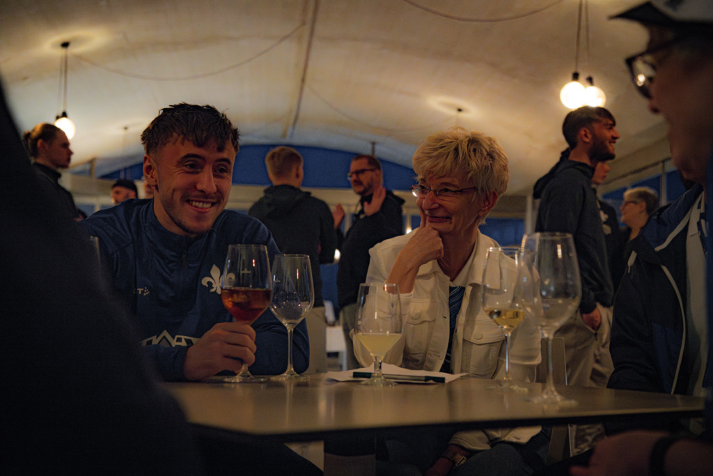 The afternoon session in El Saler was followed by around 40 Lilien fans, most of whom traveled to Valencia this Thursday as part of the SV 98 fan trip and will now spend a few days on the east coast and of course with their favorite team. A first highlight of the trip was the evening together with the players and coaching team. The Lilies and supporters met on the terrace of the team hotel to exchange ideas in a relaxed atmosphere and have a great time.