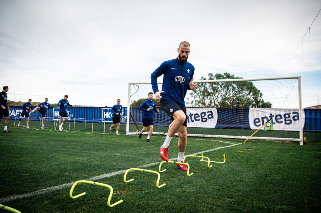 „We want to continue to work on our principles and the way we play football. The more often you train something, the more natural it becomes on match day itself. We have already made a lot of progress in the last few weeks and we want to build on that,“ said Fraser Hornby. The goals for the ongoing training camp were described before training in the morning. The contents of the following hours were perfect evidence for the attacker’s statement.