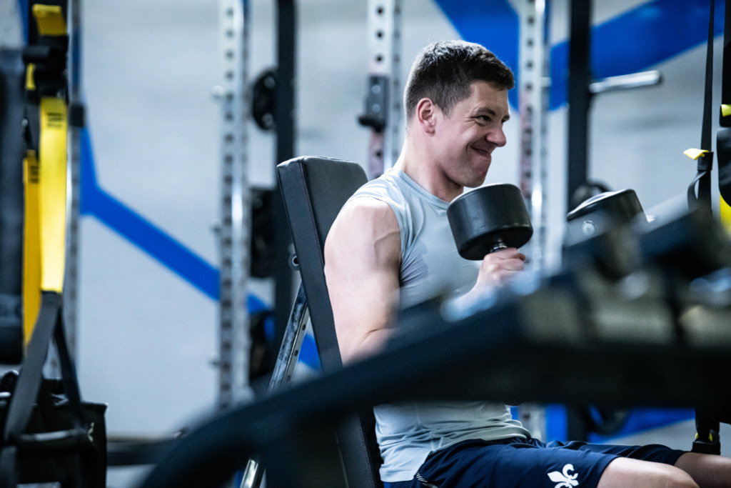 A few passing drills were followed by a roughly 20-minute scrimmage, after which the sporting portion of the training camp’s opening session concluded.