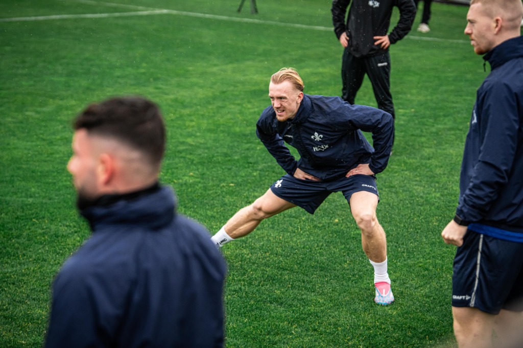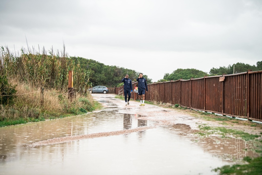 The first full day at the training camp in the Parador de El Saler has come to an end. Before the boys could begin their first training session, however, they first had to overcome a small obstacle to even reach the training pitch. The rain in El Saler had created a large puddle in front of the entrance, which the Lilies had to carefully navigate around. After successfully overcoming this obstacle, Merveille Papela asked the perfectly valid question: „What’s happening in Spain?“