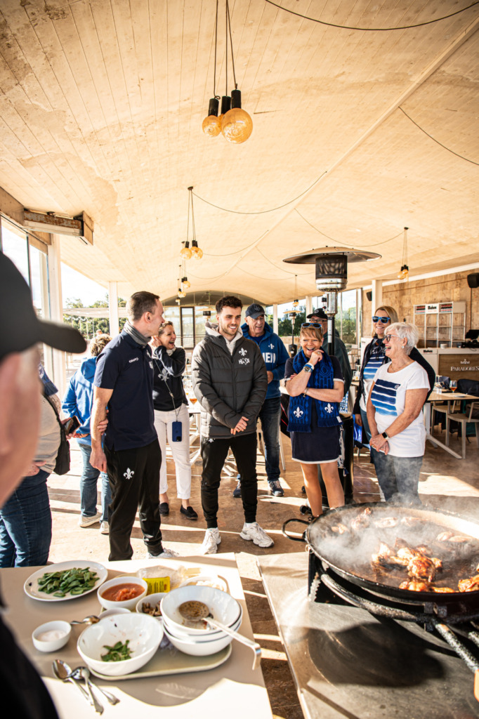 A particularly nice touch: Sergio López couldn’t resist lending a hand with the preparation. „These kinds of events with the fans are always fun. It’s a way for me to share a little bit of my Spanish culture with the Darmstadt fans,“ he explained. At first, the guests were a bit hesitant, but after the hotel’s expert demonstrated the first step, a few ventured to try their hand at the large pans.