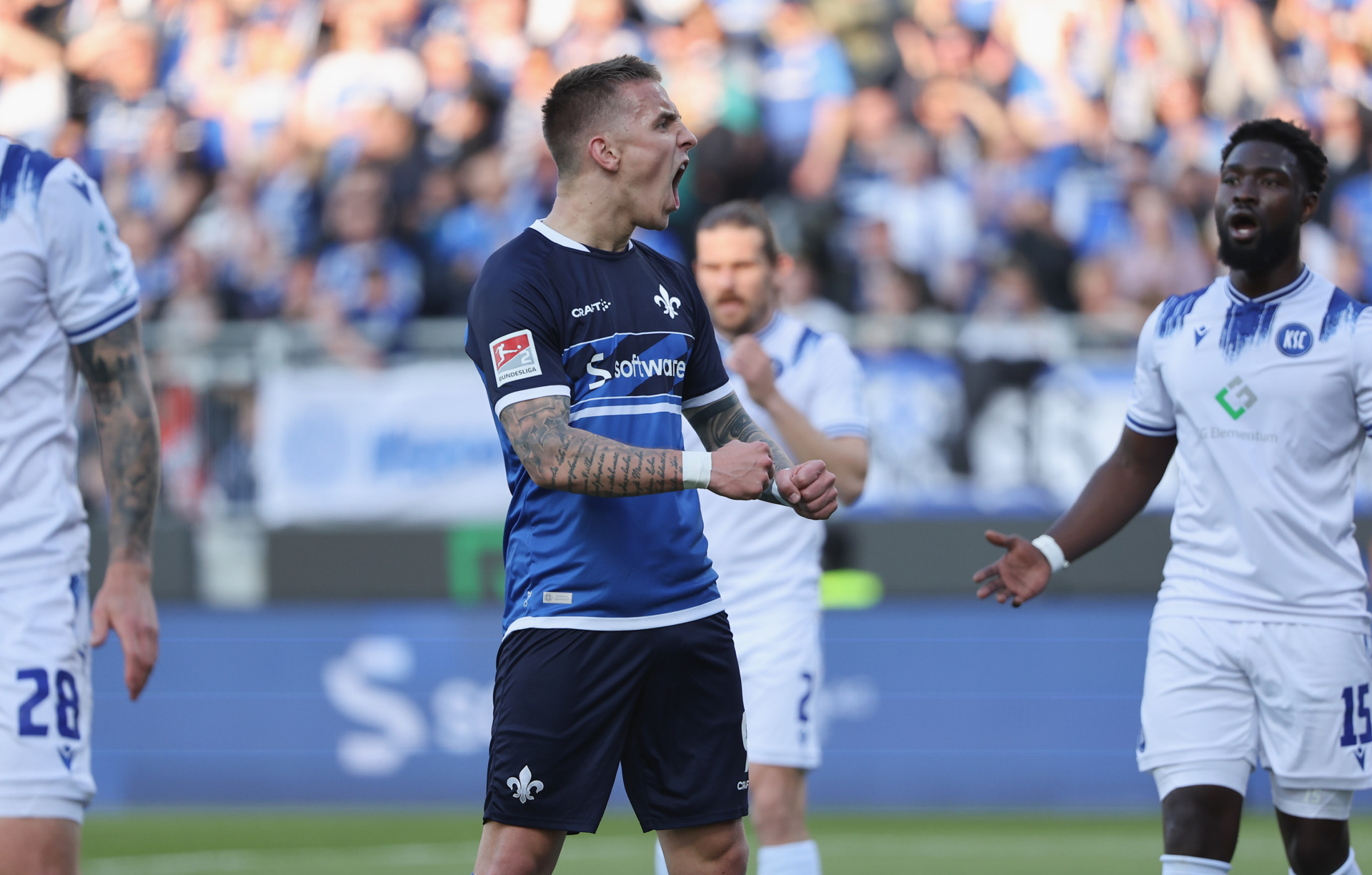 Nun gibt es bekanntermaßen eine schier unendliche Anzahl an Uhrmodellen, völlig unterschiedlich in Form, Farbe oder auch dem Drehmoment. Besitzt eine Uhr eine Ausführung mit hohem Drehmoment, sorgt das für einen größeren Antrieb und sie eignet sich so für die größeren und schweren Zeiger. Ergo gilt: Großer Antrieb = bestens geeignet für eine große Herausforderung. Eine Regel, die sich am Freitag einmal mehr auf die Lilien übertragen ließ. Die zugegeben digitale Uhr auf der Anzeigetafel im Merck-Stadion wies 11 Minuten aus, als Tietz den Aufschlag für das Drehmoment seiner Mannschaft servierte. Und wenig später großen Anteil am Ausgleichstreffer besaß. „Marvin hat einen super Pass auf mich gespielt und ich habe den Ball auf Braydon weitergeleitet. Dieses 1:1 war der endgültige Dosenöffner und hat auch unser Publikum komplett in das Spiel geholt“, erklärte Tietz mit Blick auf den Torerfolg in der 26. Spielminute, mit dem die Südhessen wie schon so häufig die richtige Antwort auf einen Gegentreffer parat hatten.