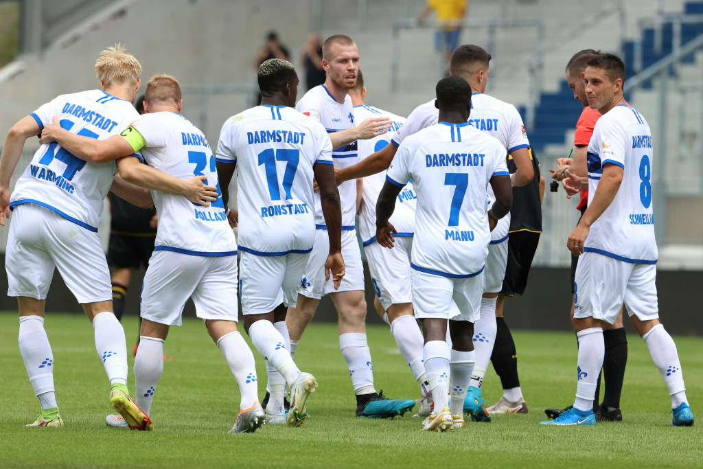 Der SV Darmstadt 98, der in den weißen Auswärtstrikots auflief (ab sofort käuflich zu erwerben), trat vom Anpfiff weg spielbestimmend auf. Nach sechs Minuten hatten die rund 1050 Lilienfans erstmals den Torschrei auf den Lippen, weil sich Mehlem geschickt an der Grundlinie durchgewuselt und auf Schnellhardt abgelegt hatte, doch dessen Schuss wurde in letzter Sekunde geblockt. In der Folge kontrollierten die Lilien die Partie und belohnten sich nach 22 Minuten auch für ihren Auftritt: Mehlem schnappte sich im Mittelfeld das Leder, spurtete über den halben Platz und blieb dann vor Bayreuths Keeper Kolke cool – 1:0. Defensiv standen die Hausherren im ersten Spielabschnitt sicher – lediglich nach 15 Minuten wurde es gefährlich, doch Schuhen konnte den zu zentral abgeschlossenen Versuch parieren.