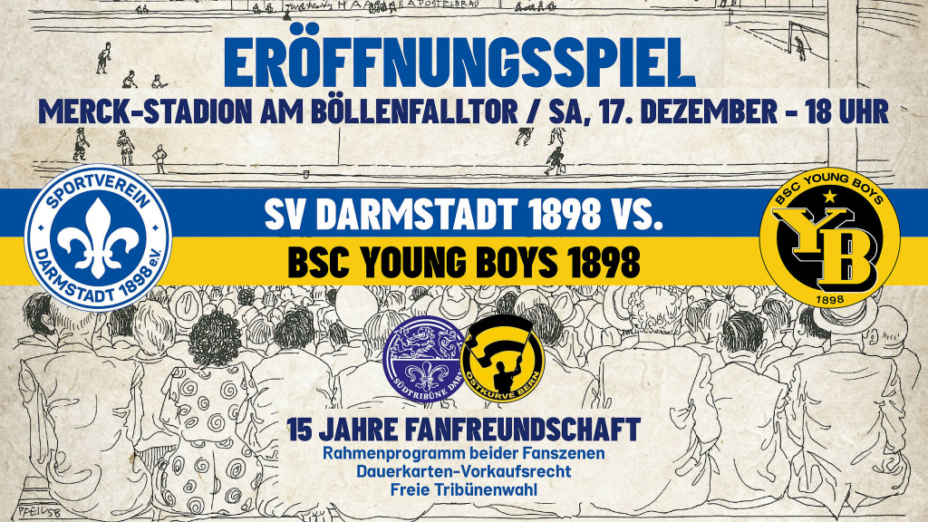 Wer käme da als Gast gelegener als der Schweizer Topklub BSC Young Boys, um zeitgleich 15 Jahre Fanfreundschaft mit YB zu zelebrieren? Die Lilien freuen sich auf zahlreiche Fans aus der Schweizer Hauptstadt, die sich an diesem Tag auf die Reise nach Südhessen machen werden. Um die freundschaftlichen Kontakte innerhalb der Fanszenen zu feiern, zu vertiefen und neue Freundschaften zu knüpfen, werden sich die YB-Fans nach eigenem Gusto auf das ganze Stadion verteilen und nicht den Gästeblock nutzen. Gleichermaßen haben alle Lilienfans die Gelegenheit, sich beim Ticketkauf ihren Platz am Bölle frei auszuwählen und das Stadion mal aus einem anderen Blickwinkel zu erleben sowie sich ab diesem Tag auch endlich wieder rund um die Tribünen bewegen zu können.