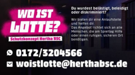 The „Where is Lotte?“ safety concept was launched at the start of the 2022/23 season. A safe space is available for those affected by any kind of discrimination—such as sexism, racism, or homophobia—to seek support and assistance. Emergency psychosocial care is available on site, and there is contact with the medical services.