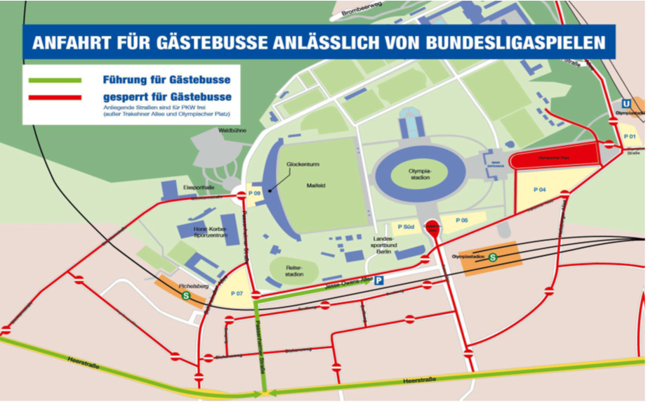 9er, die der aktiven Fanszene zugeordnet werden können, dürfen bei den Bussen (Jesse-Owens-Allee) parken. Die Jesse-Owens-Allee ist kostenfrei. Alle anderen 9er und Pkw müssen auf die Parkplätze (PO7) zurückgreifen.