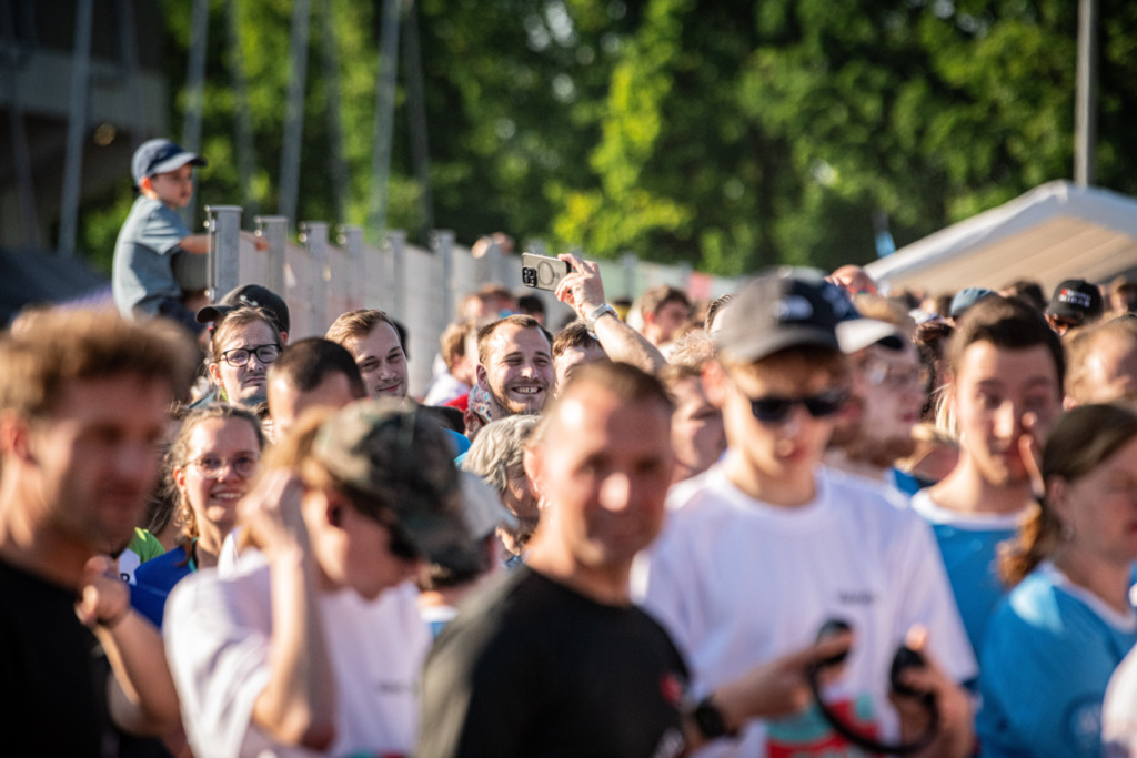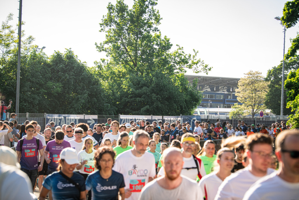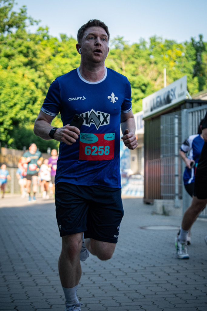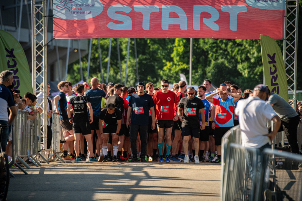 The Merck Stadium at Böllenfalltor was transformed into a running arena: 7,100 participants from almost 300 companies took part in the 12th Darmstadt Merck Corporate Run on Tuesday (May 13th) – a record number of participants! The route led from the start behind the back straight through the adjacent forest and ended with a special highlight: the finish line directly in front of the main grandstand. In the middle of the field: a 25-person team from SV Darmstadt 98, consisting of employees from the office, the sports department, and the youth performance center (NLZ).