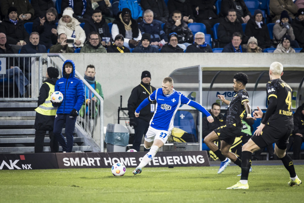 Mit der Führung im Rücken gewann der BVB an Sicherheit und die Darmstädter schafften es seltener, zu Aktionen in der Dortmunder Hälfte zu kommen. Nach 39 Minuten verzeichneten die Hausherren durch Tim Skarke aber doch den ersten Abschluss: Nach einem Flankenball von Luca Pfeiffer versuchte der Angreifer es direkt, setzte den Ball mit viel Risiko aber am Tor vorbei.