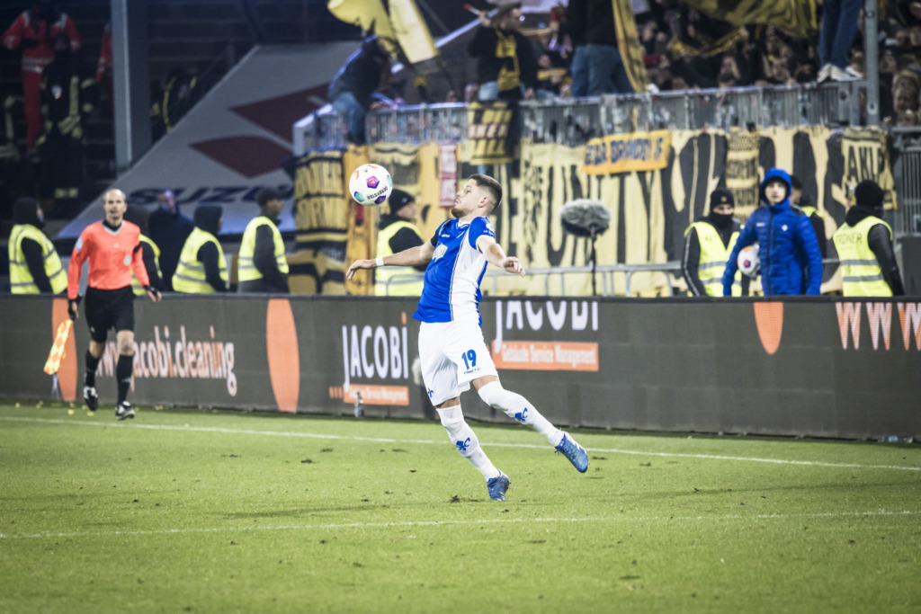 Auch danach blieben die 98er die aktivere Mannschaft, die erste große Chance ging jedoch auf das Konto der Gäste: Brandt versuchte es nach einer Flanke aus kurzer Distanz, Marcel Schuhen war hellwach und wehrte den Ball ab (20.). Vier Minuten später traf Brandt dann: Im Anschluss an einen Konter über Bynoe-Gittens zielte er ins lange Eck (24.).