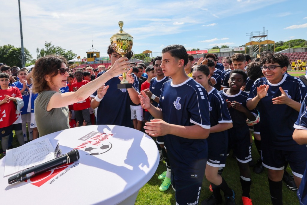 The final tournament in Darmstadt represents the integrative nature of the educational program. United by the motivating power of football, children from different countries of origin came together for a big football festival where they were able to represent the colours of their respective partner clubs. The participants not only showed the footballing progress they have made in the past year, but also experienced solidarity, fair play and teamwork first hand. The joy was particularly great in Hamburg and Duisburg: the groups from the primary school at Glinder Au (U10) and Herbert-Grillo-Gesamtschule (U14) were able to secure victory and the coveted challenge cups on behalf of FC St. Pauli and MSV Duisburg into the Darmstadt sky. A special honour was given to the groups from Braunschweig (Diesterwegstraße primary school) and Mainz (IGS Mainz Bretzenheim), who were awarded the Fair Play Cup for their exemplary behaviour.
