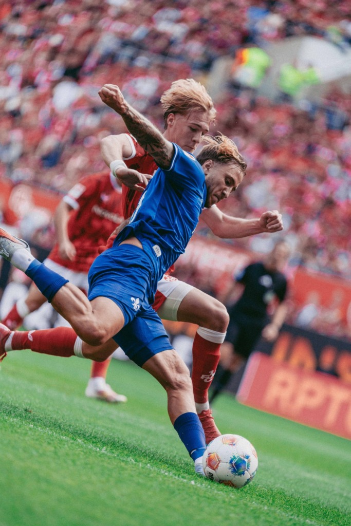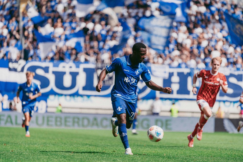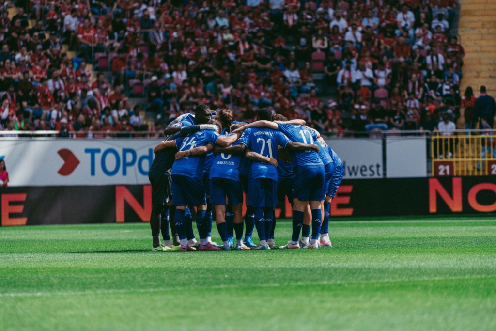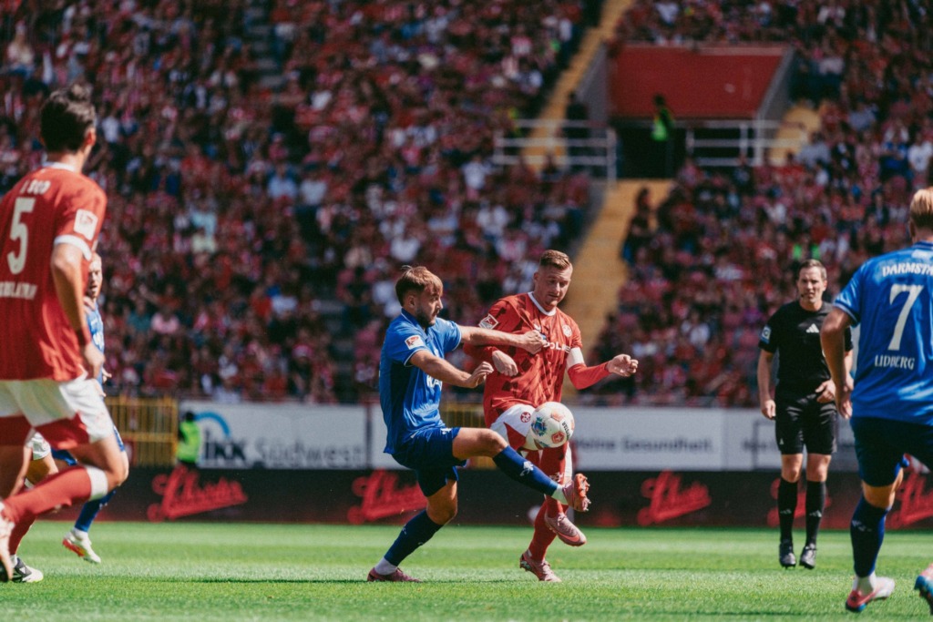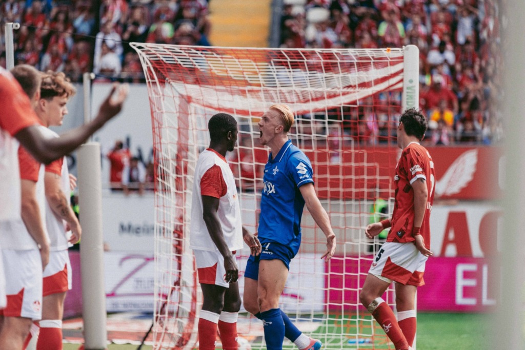 Two minutes later, FCK made their presence felt again, but Prtajin fired the ball wide. Sirch also narrowly missed his target with a free kick. The Red Devils subsequently intensified their efforts and were rewarded: Skyttä fired the ball into the net to make it 1-1 with 6 minutes remaining. But that wasn’t enough. In the first minute of stoppage time, Alidou ghosted into the area and headed the ball into the Darmstadt net, and just before the final whistle, Raschl made it 3-1 with the Lilies high up the pitch trying to force an equaliser.