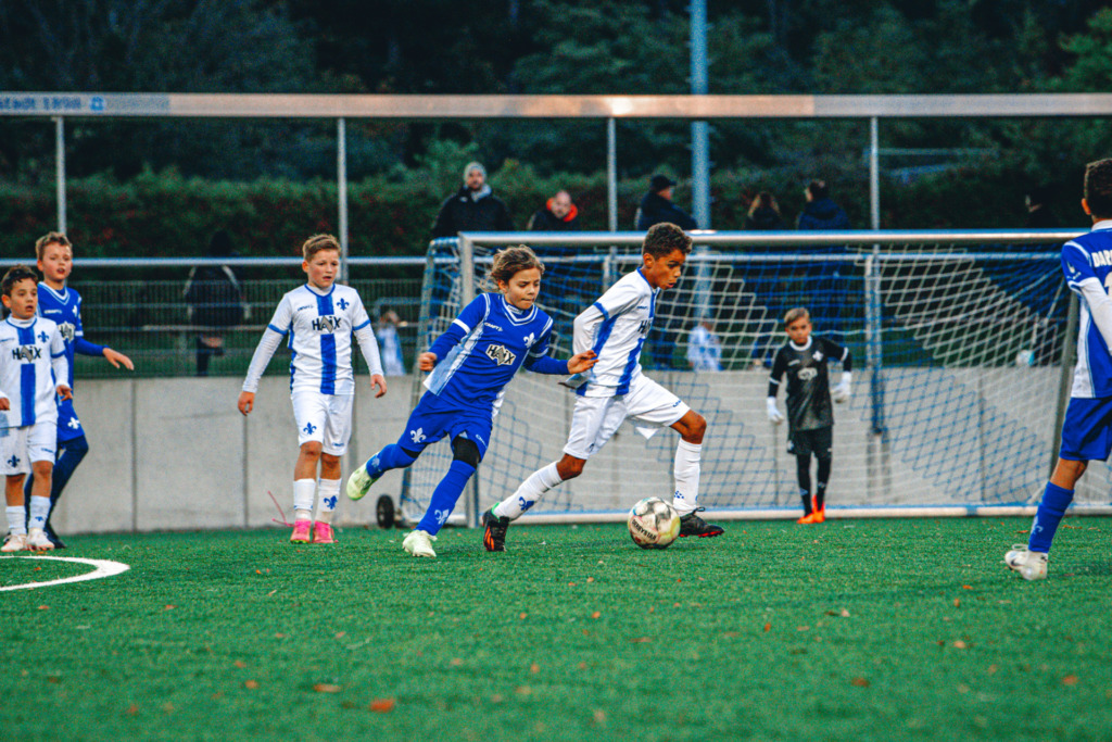 Schnittstellentag am Merck-Nachwuchsleistungszentrum. Ein Nachmittag, der nur für das Fußballspielen geblockt ist. Am vergangenen Dienstag (31.10.) fanden sich die Lilien-Nachwuchsmannschaften der U10 bis zur U17 zusammen, um in gemischten Teams gegeneinander Fußball zu spielen. In den blau und weißen 98er-Trikots wurde je 90 Minuten gespielt. Die Anfangspartien bestritten die Junglilien der U10 und U11, die in vier gemischten Teams im Mini-Turnierformat auf halbem Feld spielen. Anschließend folgten die U12/U13, die U14/15 und die U16/U17. Ziel des Ganzen? Lern- und Erfahrungswerte für die Spieler zu gewinnen und den Trainern der jeweils älteren Mannschaft einen Blick auf die Lilien des jüngeren Jahrgangs zu ermöglichen. Es ist ein erster Eindruck und ein Kennenlernen, bevor zu Beginn der neuen Saison der Sprung in die nächste Altersklasse ansteht. Für die Spieler der älteren Jahrgänge bietet sich die Chance, auf dem Platz Verantwortung zu übernehmen. Und für die Jüngeren ist es eine gute Gelegenheit, Erfahrung mitzunehmen und sich zu entwickeln, denn bekannterweise kann man noch viel von den „Großen“ lernen.