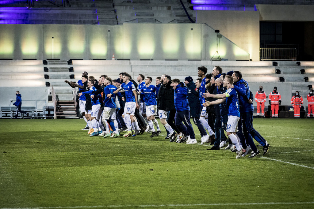 “Dass die Fans es so enthusiastisch aufgenommen haben, war mir wirklich eine Ehre”, bedankte sich Tietz später am Mikrofon bei allen blau-weißen Doppelhorn-Sängern und -Tänzern. Es war das i-Tüpfelchen auf einer ohnehin schon wahnsinnigen Stimmung am Böllenfalltor, in welchem sich erstmals nach längerer Zeit wieder 11.000 Lilien-Fans versammelten. Und sie entfachten unter Flutlicht wieder einmal diese ganz besondere Bölle-Magie. Etwas, worauf sich Torsten Lieberknecht schon auf der Pressekonferenz vor der Partie freute: “Gemeinsam können wir hier eine große Wucht erzeugen”. So kam es auch.