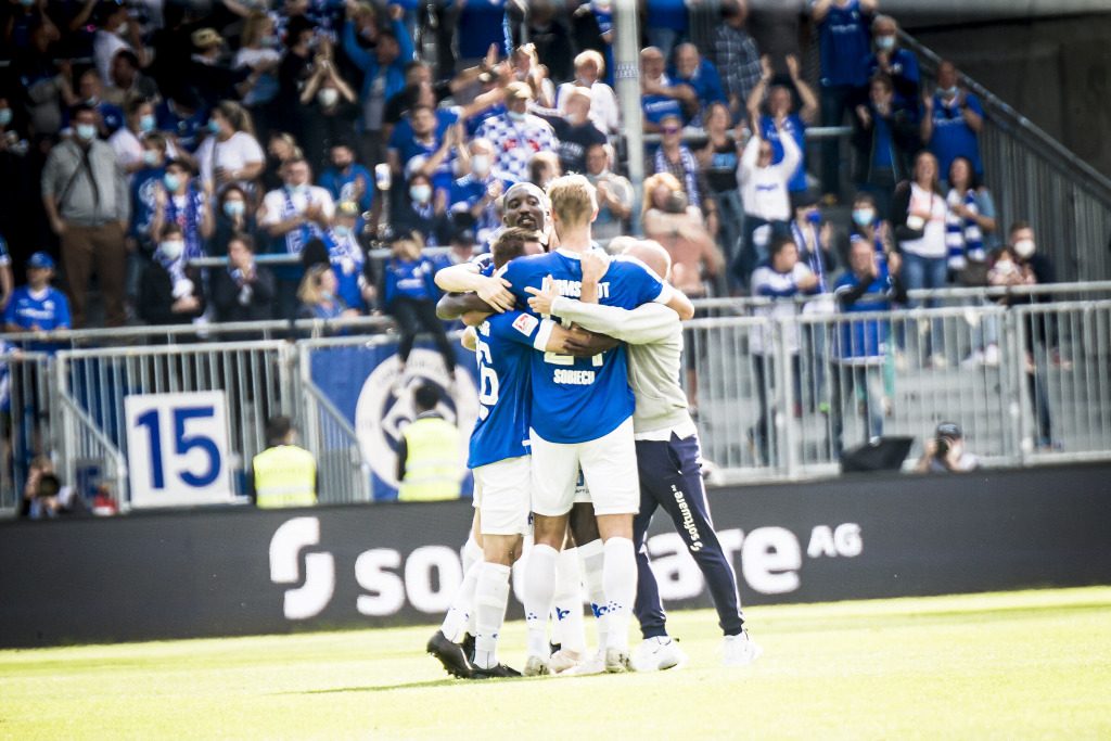Die Emotionen mussten einfach raus. Als Schiedsrichter Christian Dingert die Pfeife zum Mund führte und mit mehreren lauten Pfiffen das Spiel beendete, gab es im Merck-Stadion am Böllenfalltor kein Halten mehr. Allen voran nicht für Torsten Lieberknecht. Der Cheftrainer hob mit einem beherzten Sprung vom Boden ab und riss euphorisiert seine beiden Arme in den blauen Darmstädter Himmel. Erleichterung pur. Als er wieder landete, sprintete er los und fand sich wenig später in den Armen seiner Mannschaft wieder - mit einem breiten Lächeln sowie der Freude über drei hart erkämpfte Punkte im Gesicht.