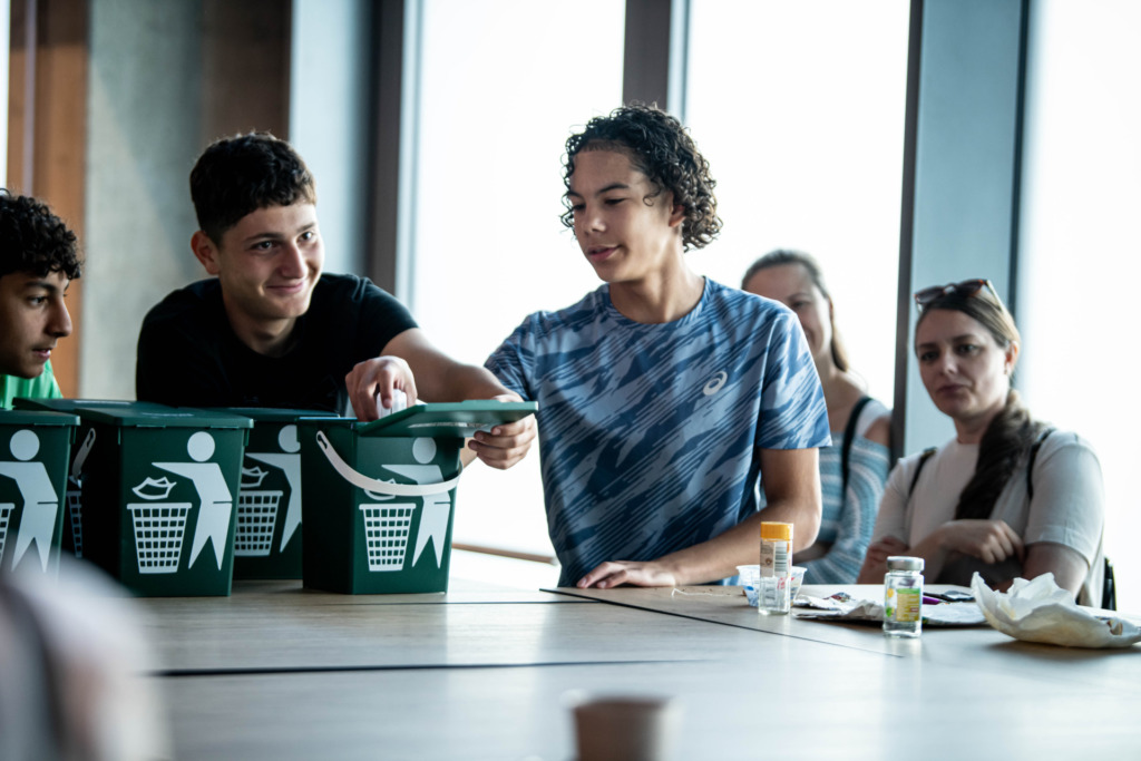 An drei interaktiven Stationen beschäftigten sich die Schülerinnen und Schüler auf vielfältige Weise mit den Themen Mülltrennung, Recycling und nachhaltige Rohstoffe. Beim Müll-Memory hieß es: In welche Tonne gehört was? An der nächsten Station wurde erkundet, welchen Weg unser Plastikabfall nimmt. Und bei spannenden Experimenten konnten die Jugendlichen selbst aktiv werden. An jeder Station sammelten die Klassen Punkte für die Gesamtwertung – doch am Ende lagen alle gleichauf. Das Los entschied schließlich den Sieger: Die Mornewegschule gewann Tickets für ein Heimspiel der Lilien. Auch die anderen beiden Klassen gingen nicht leer aus und wurden mit Lilien-Schals belohnt. Den Abschluss bildete eine Stadionführung durch das Merck-Stadion am Böllenfalltor.