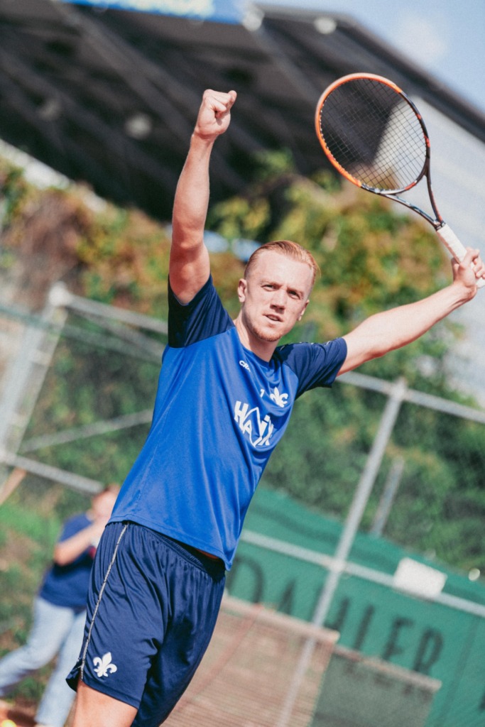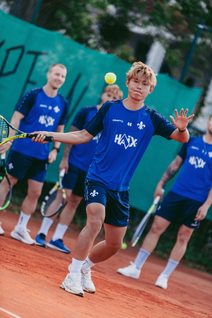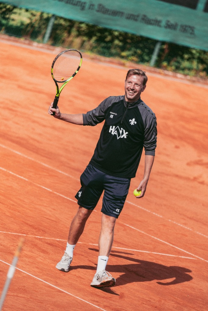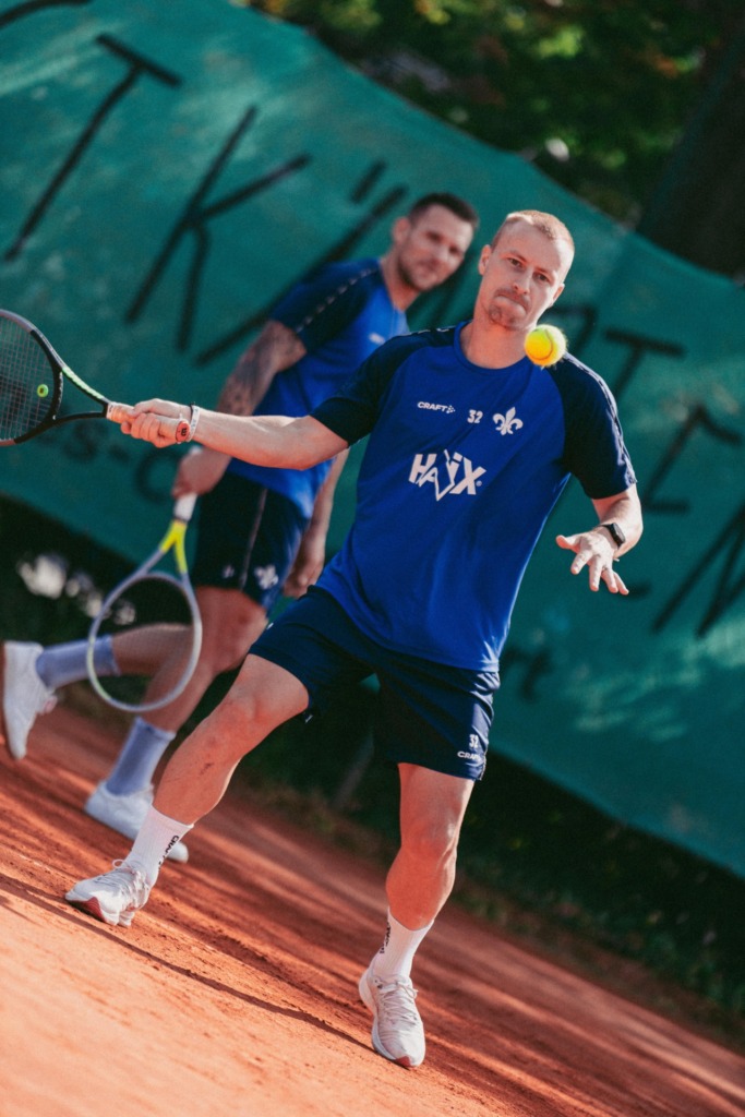 A very special session was scheduled for the SV Darmstadt 98 professional team on Wednesday (September 2nd). They swapped their football boots for tennis rackets to participate in a joint team event on the TEC Darmstadt grounds. „We have a very good and friendly relationship with TEC and have been thinking about using the international break for a tennis event for a while. The boys are really enjoying themselves, and that’s the main focus today,“ Florian Kohfeldt emphasised in a media roundtable on the sidelines of the tennis courts.