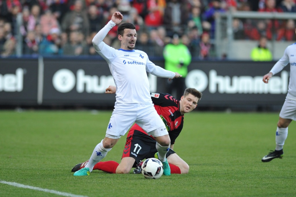 Über 100 Bundesliga-Spiele, 167 Spiele in der 2. Bundesliga und ein ganz wichtiges Tor in Bielefeld vor zehn Jahren: Jerome Gondorf hat am vergangenen Sonntag (19.5.) seine Profikarriere mit 35 Jahren beendet. Nach 146 Pfichtspielen für den Karlsruher SC ist Schluss, die Fußballschuhe hängen nun am Nagel. Geprägt hat der gebürtige Karlsruher dabei auch den SV 98: In insgesamt 140 Pflichtspielen lief er mit der Lilie auf der Brust auf, beim Aufstieg der Darmstädter 2014 erzielte der Mittelfeldspieler im Relegationsrückspiel in Bielefeld das wichtige Tor zur zwischenzeitlichen 3:1-Führung. Nach zwei Jahren Bundesliga mit dem SVD wechselte der heute 35-Jährige zu Werder Bremen, anschließend folgten eineinhalb Jahre beim Sportclub aus Freiburg. Seit Anfang 2020 spielte Gondorf wieder in seiner Geburtsstadt Karlsruhe, für den KSC lief er auch als Kapitän auf. Wir gratulieren Dir zu einer tollen Karriere und wünschen Dir nur das Beste für die Zukunft, Jego!