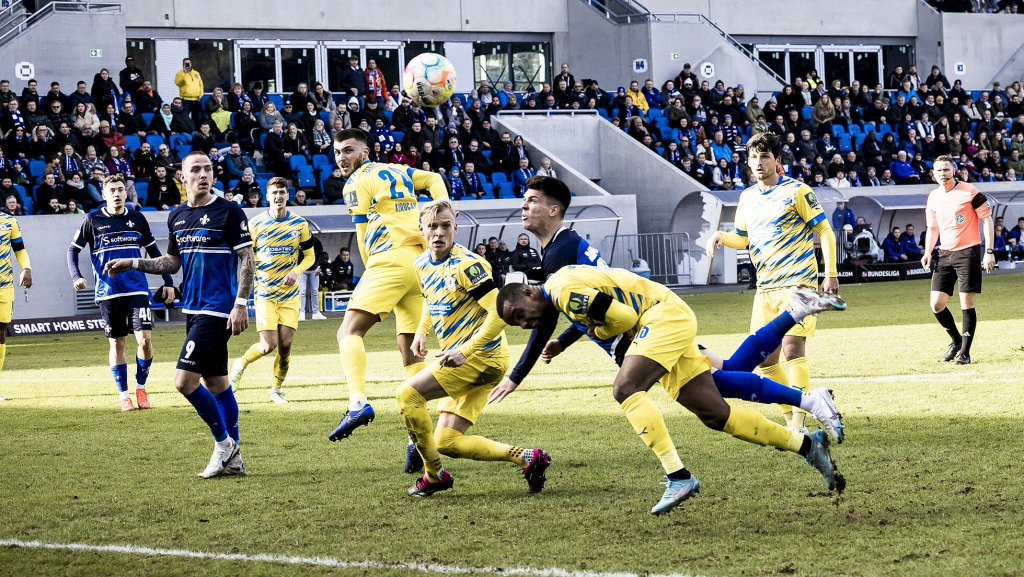 Honsak traf mit einem satten Schuss die Latte und Marvin Mehlem köpfte den Abpraller ins lange Eck, doch der Mittelfeldspieler hatte sich zuvor laut Meinung von Schiedsrichter Kampka mit einem Schubser Raum verschafft und so zählte der Treffer nicht (44.). Somit ging es dann trotz der Darmstädter Überlegenheit ohne Tore in die Pause.